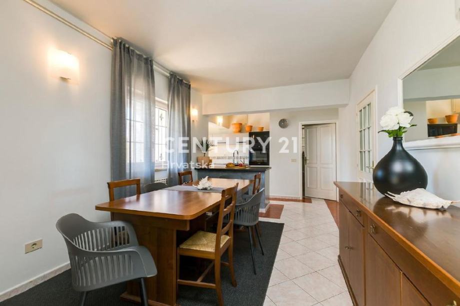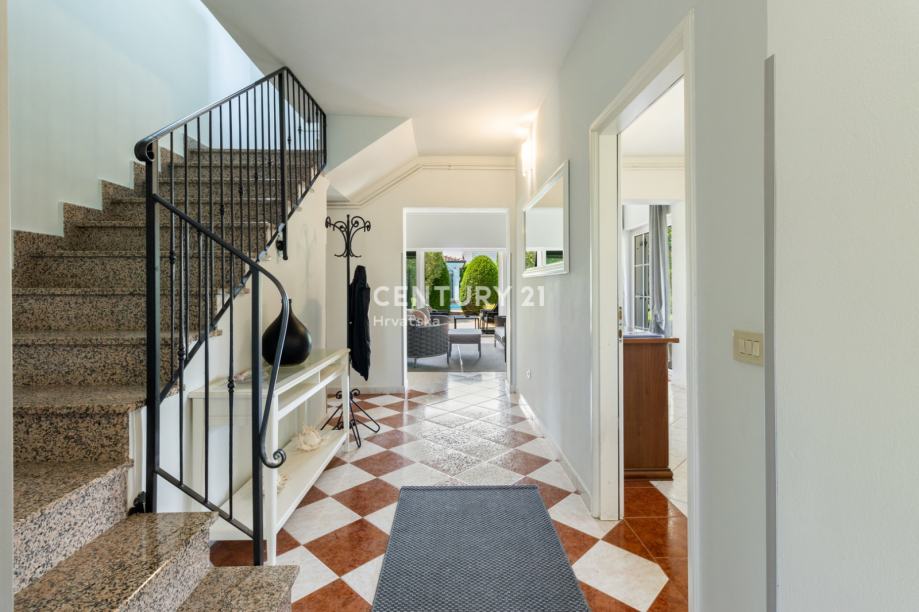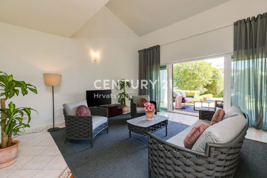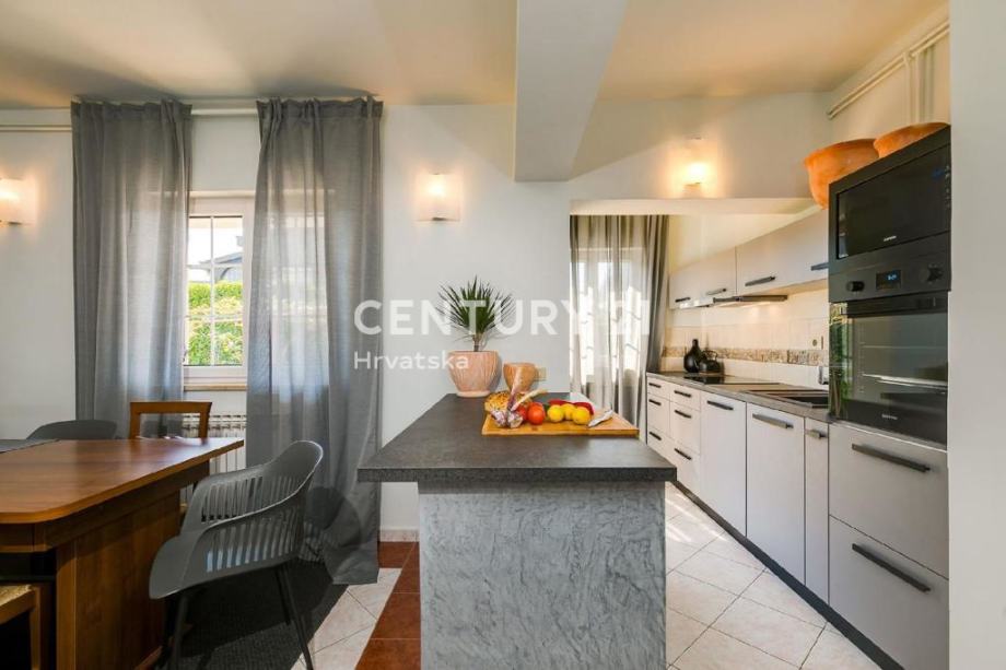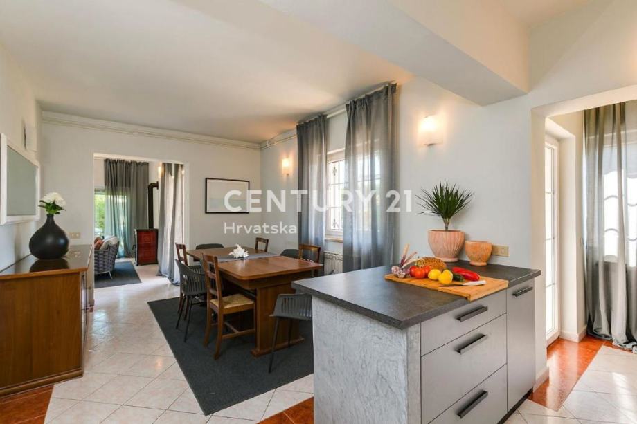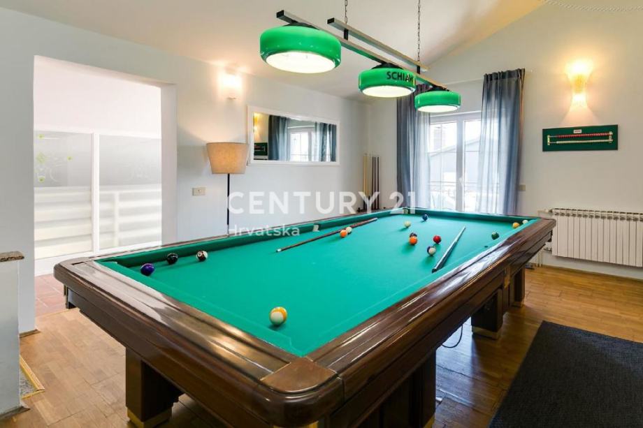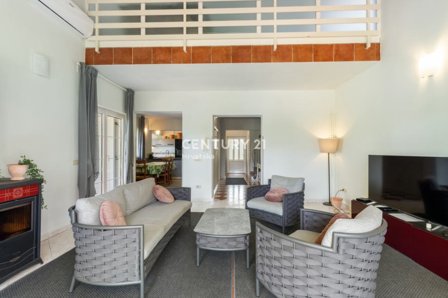 U prizemlju se nalazi svijetao dnevni boravak s kaminom, moderna i potpuno opremljena kuhinja s blagovaonicom, kao i tri spavaće sobe i dvije funkcionalne kupaonice. Penjući se na prvi kat, otkrivate dodatni dnevni boravak s biljarskim stolom, okružen s dvije dodatne spavaće sobe i kupaonicom s hidromasažnom kadom.