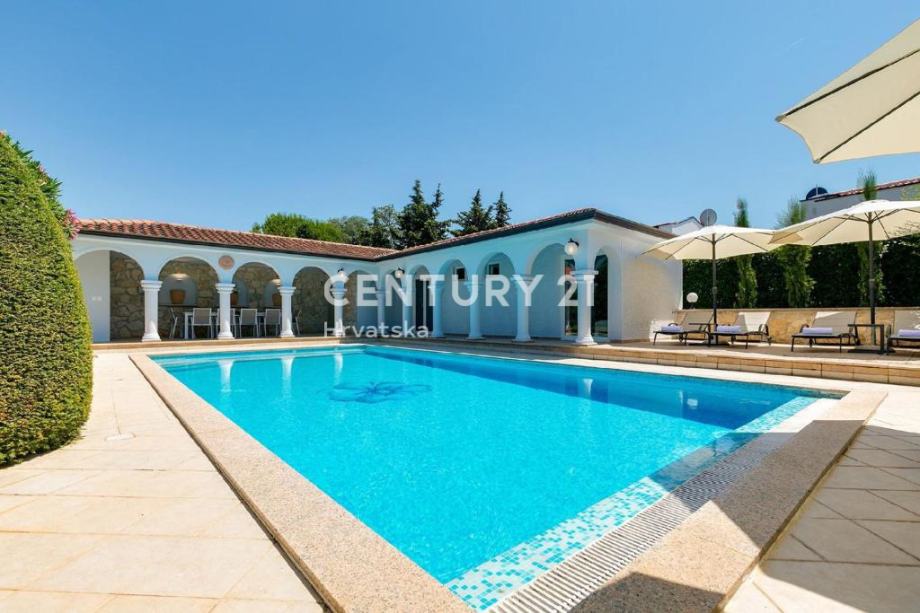 Ova elegantna nekretnina s velikim bazenom pruža mogućnosti za opuštanje i druženje s potpunom privatnošću.