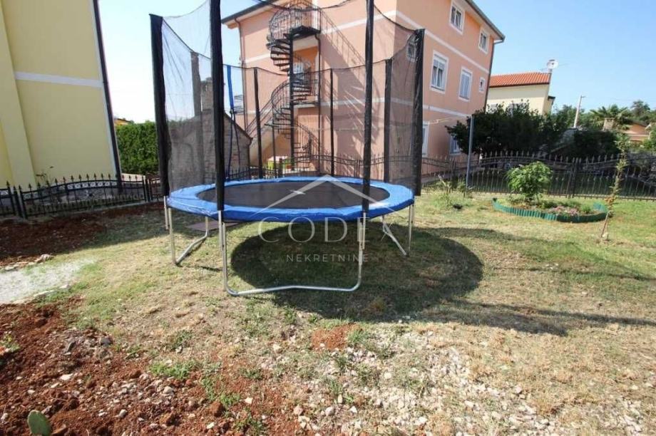 Okućnica od skoro 600 m2 bogata je roštiljem, vrtnom kućicom i igralištem te bazenom.