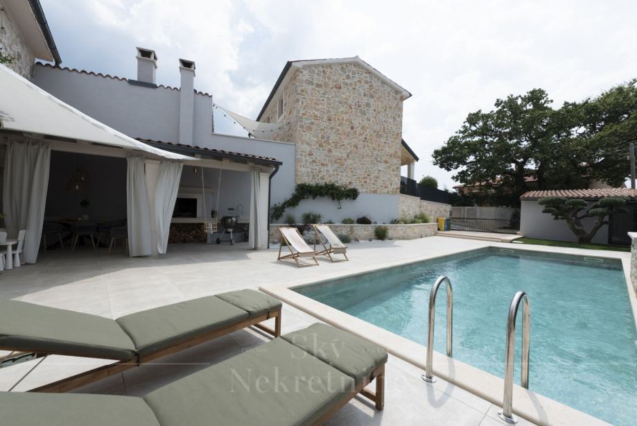 Kuća je smještena u prekrasnom vinogradarsko/maslinarskom području, idealnom za one koji traže mir, udobnost i blizinu prirode. Ove nekretnine savršene su za obiteljski život ili kao investicija za najam. Kuća, s površinom od 190 m2, ima prostrane i svijetle prostorije koje uključuju dnevni boravak, kuhinju, spavaće sobe i moderno uređene kupaonice. Kuća ima vlastiti vrt površine 980 m2 s bazenom dimenzija 12.80 m x 3.50 m, idealan za uživanje u toplim ljetnim danima. Uz kuću dolaze tri parkirna mjesta.. Kuća se sastoji od dnevnog boravka, kuhinje, prostranih spavaćih soba i elegantno uređenih kupaonica, pružajući sav potreban komfor. Privatni vrt površine 980 m2 s bazenom dimenzija 12.80 m x 3.50 m pruža savršeno mjesto za opuštanje i uživanje u prirodnom okruženju. U dvorištu se nalazi i mali maslinik. Uz kuću dolaze tri parkirna mjesta, što dodatno doprinosi praktičnosti i komforu. Kuća ima ukupno dvije spavaće sobe, dvije kupaonice i jedan odvojeni WC, raspoređene tako da pružaju maksimalnu udobnost i privatnost. S ukupno 980 m2 vrta, ova nekretnina nudi obilje prostora za vanjske aktivnosti i opuštanje. Kuća je trenutno se iznajmljuje turistima i postiže izvrsne recenzije na platformama za kratkoročni najam. Ovaj status ukazuje na dosljedno visoku kvalitetu usluge, zadovoljstvo gostiju i pažnju prema detaljima, što doprinosi njenoj atraktivnosti i povjerenju potencijalnih gostiju. Smještena u slikovitom mjestu Bajkini, ova kuća pruža mirno utočište u srcu prirode, dok je Poreč, sa svim svojim kulturnim, gastronomskim i zabavnim sadržajima, udaljen samo nekoliko minuta vožnje. Blizina mora, plaža i brojnih turističkih atrakcija čini ovu lokaciju izuzetno privlačnom za sve koji žele uživati u najboljim što Istra nudi. Podaci o nekretnini: