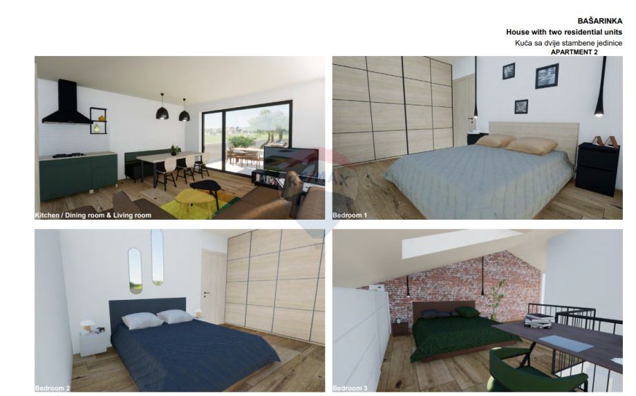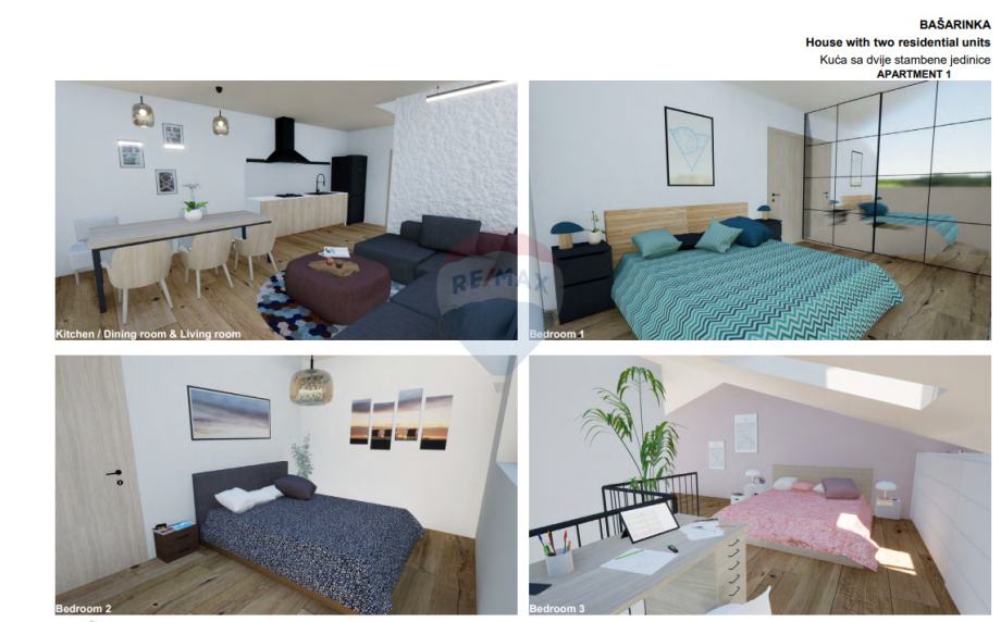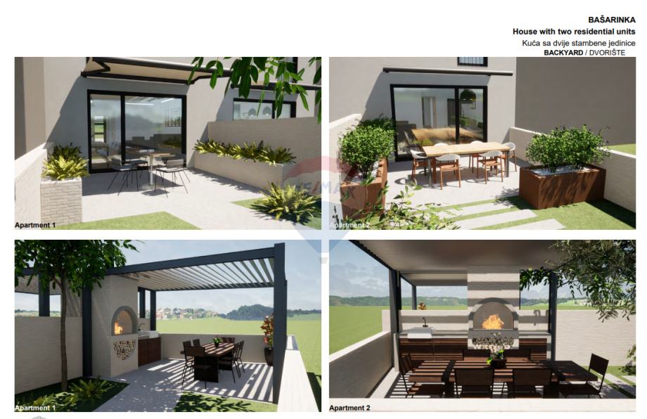 Na prodaju je moderna kuća u nizu koncipirana od dvije stambene jedinice. Svaka stambena jedinica sastoji se od prizemlja, prvog kata te potkrovlja.