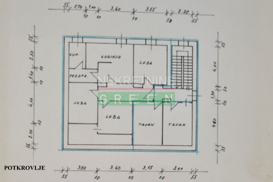 - neuređeni tavanski prostor podne površine 26 m2