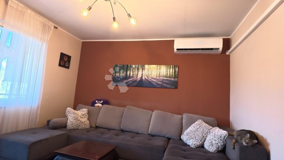 Stan površine 73 m² sastoji se od dvije spavaće sobe, prostranog dnevnog boravka, kuhinje, hodnika, WC-a i kupatila. Oba balkona su zatvorena kliznim stijenama, što pruža dodatnu udobnost i privatnost. Stan je klimatiziran s dvije klime, ima PVC stolariju i energetski certifikat C.