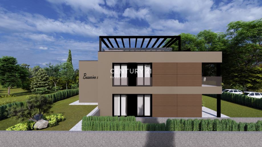 Na odličnoj lokaciji samo 2500 m od mora i lijepih plaža te 3000 m od centra Poreča gradi se zgrada sa 5 stanova.