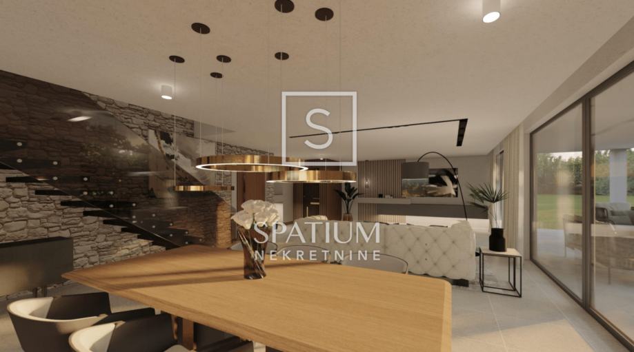 Kuća se nalazi u novom rezidencijalnom dijelu, okružena modernim luksuznim vilama, što jamči ekskluzivnost i kvalitetan ambijent. Projektirana je s naglaskom na suvremeni dizajn i maksimalnu udobnost te raspolaže s ukupno 210 m² stambene površine raspoređenih na dvije etaže.