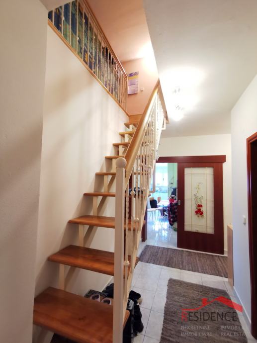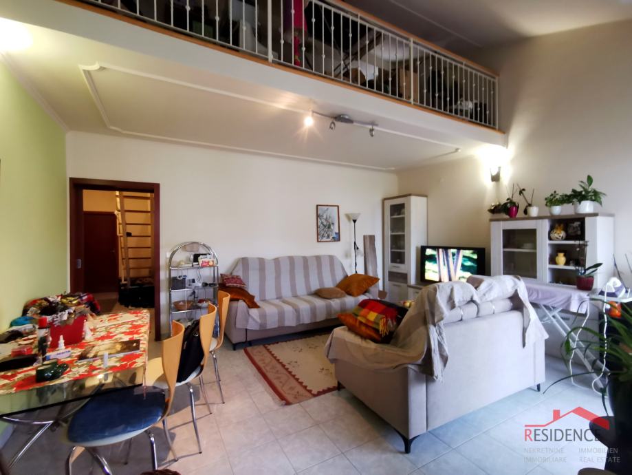 Poreč, Finida, stan na drugom katu sa galerijom, parkirnim mjestom i spremištem u podrumu zgrade, sveukupne površine 104.79 m2. Stan površine 94 m2, sastoji se od hodnika, kuhinje, dnevnog boravka + blagovaonice, dvije spavaće sobe, dvije terase, kupaonice, ostave i galerije. Stanu pripada i parkirno mjesto te spremište u podrumu zgrade. Stan je namješten i namještaj je uključen u cijenu