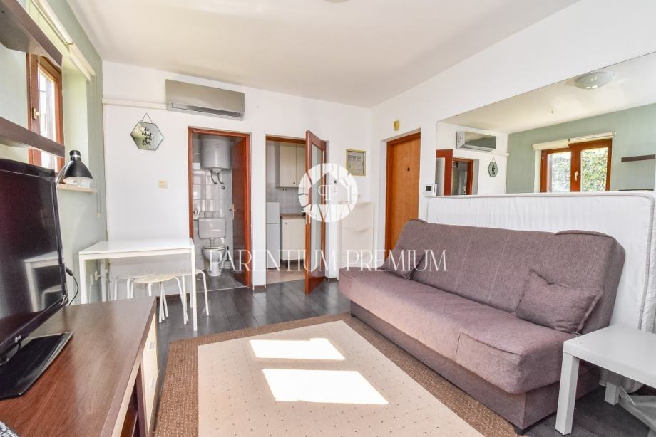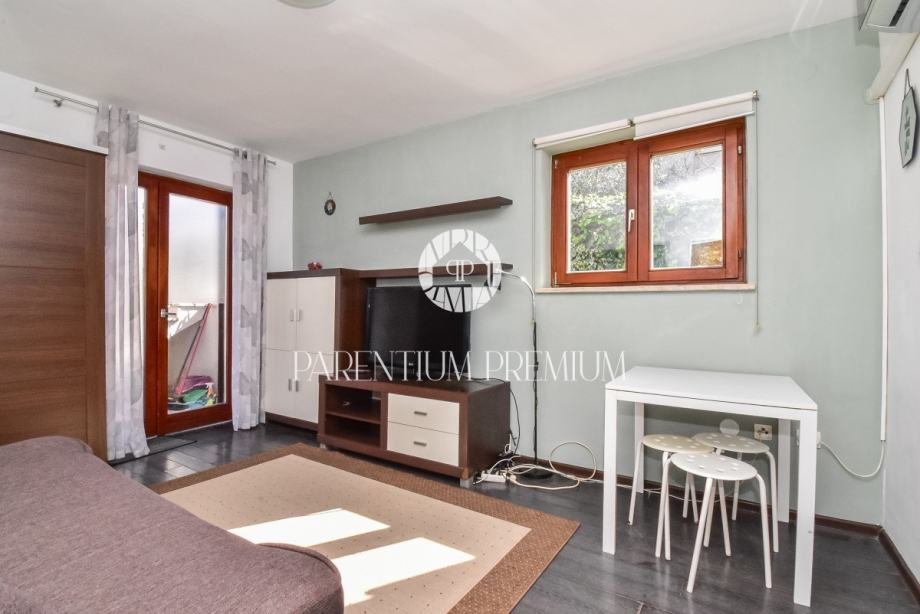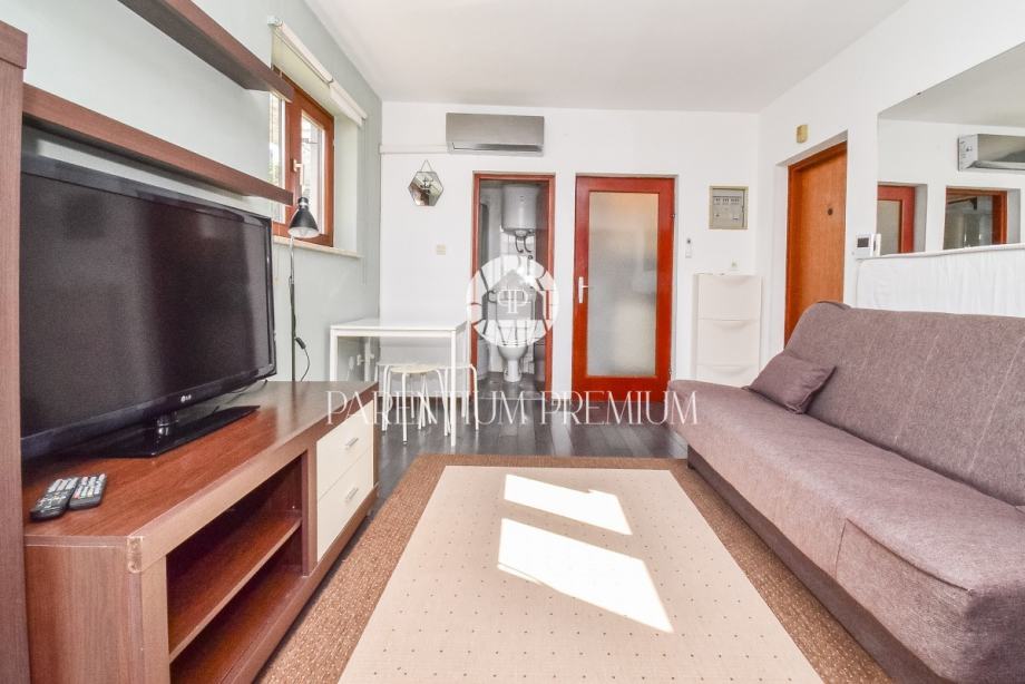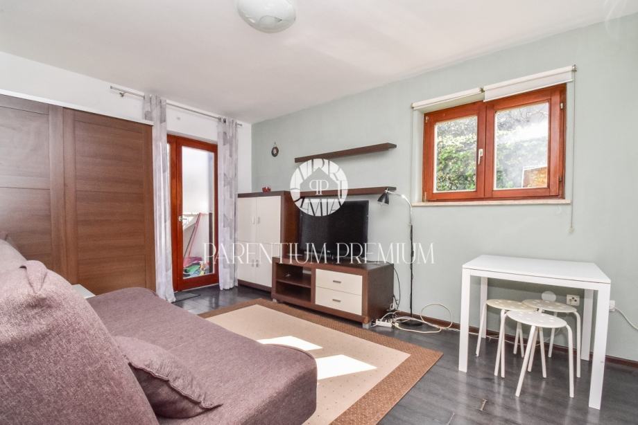 Garsonjera ima dnevnu/spavaću sobu, zasebno kuhinju i kupaonicu, te terasu koja vodi u dvorište da roštiljem od 60m2.