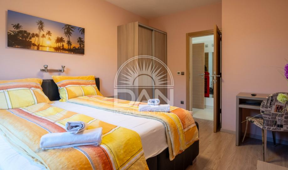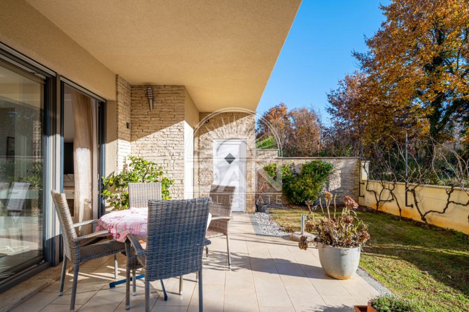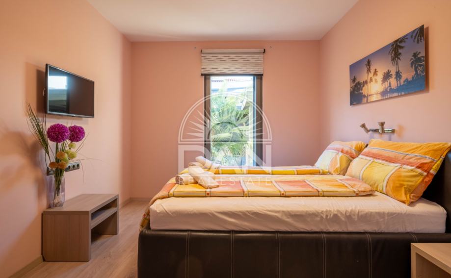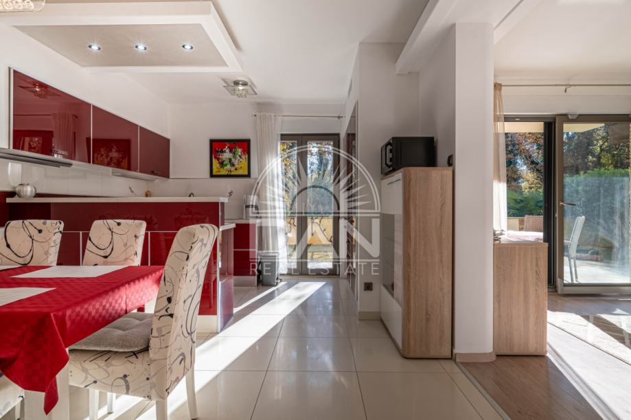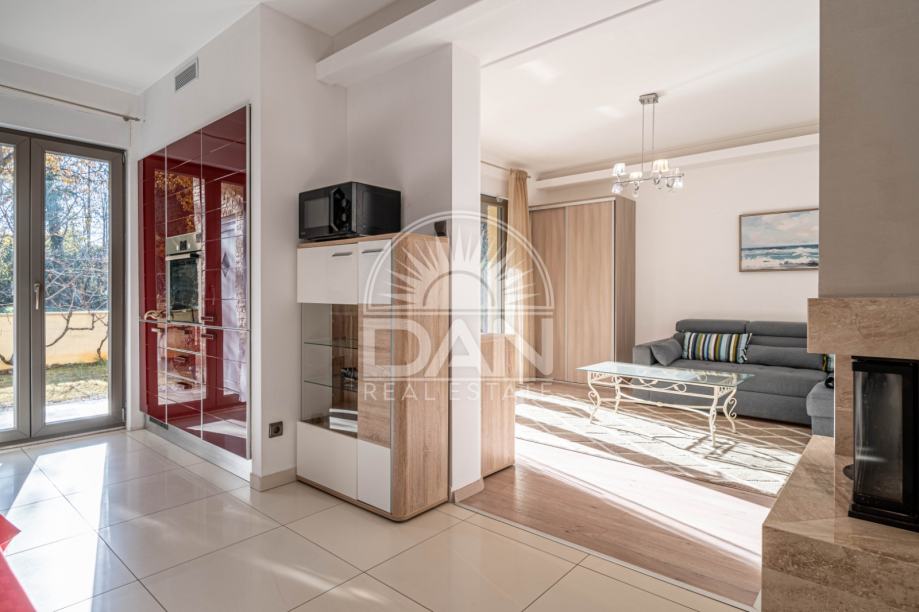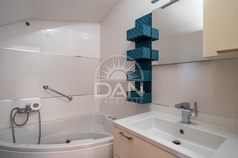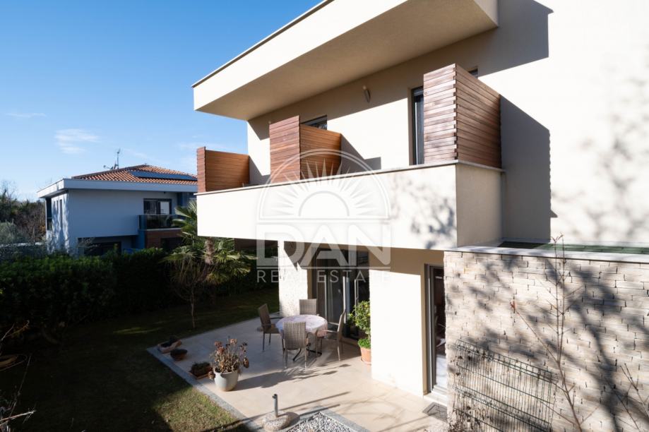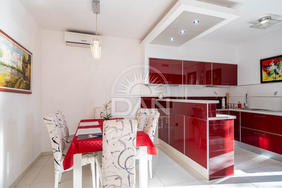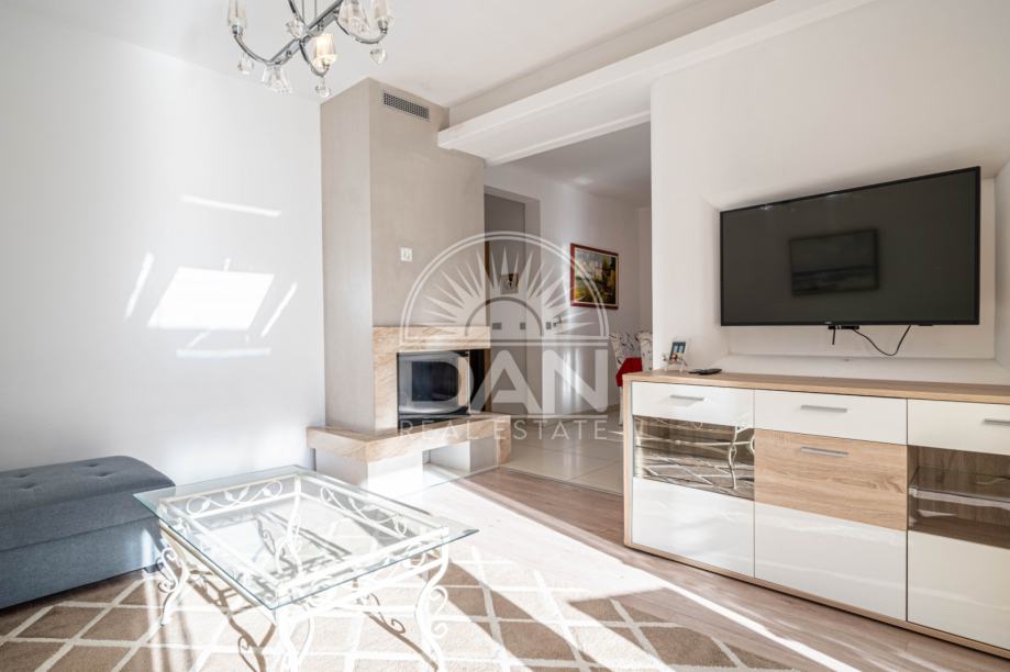 Nekretnina raspolaže s 125 m² stambene površine raspoređene kroz dvije etaže, dok se na parceli od oko 186 m² nalazi lijepo uređen vrt s ljetnom kuhinjom i pomoćnim objektom. U prizemlju se nalaze spavaća soba, kupaonica, kuhinja s blagovaonicom, dnevni boravak, ostava i natkrivena uređena terasa okrenuta prema vrtu. Na katu se nalaze tri udobne spavaće sobe, svaka s vlastitom kupaonicom, te dvije otvorene terase.