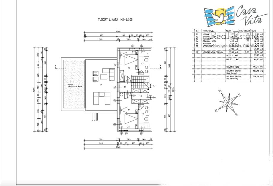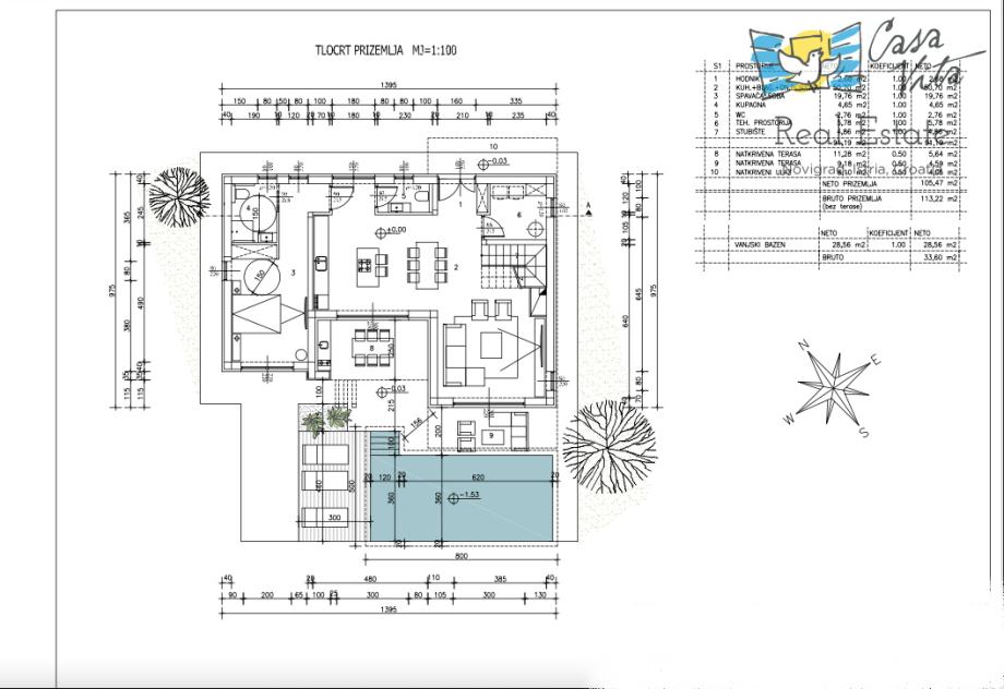 Površina kuće iznosi neto 162m2, s bazenom od 30m2.