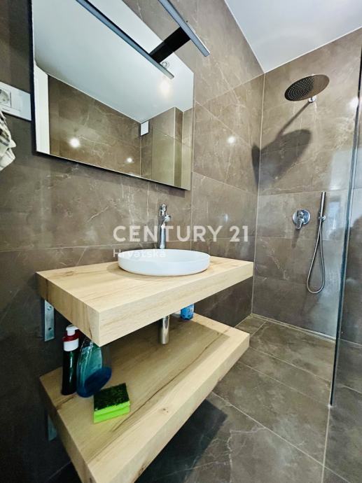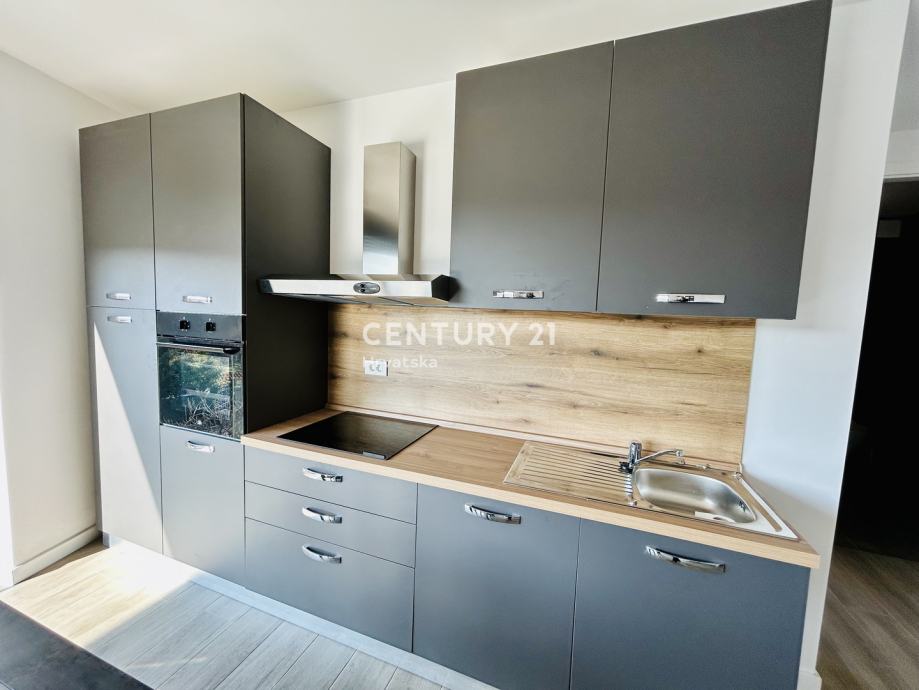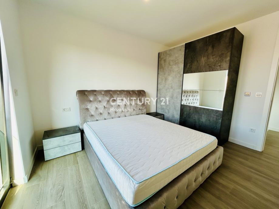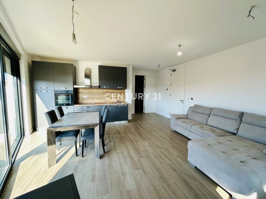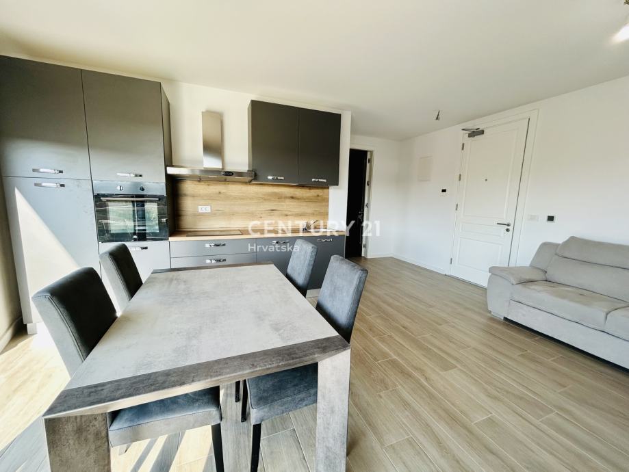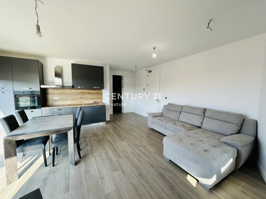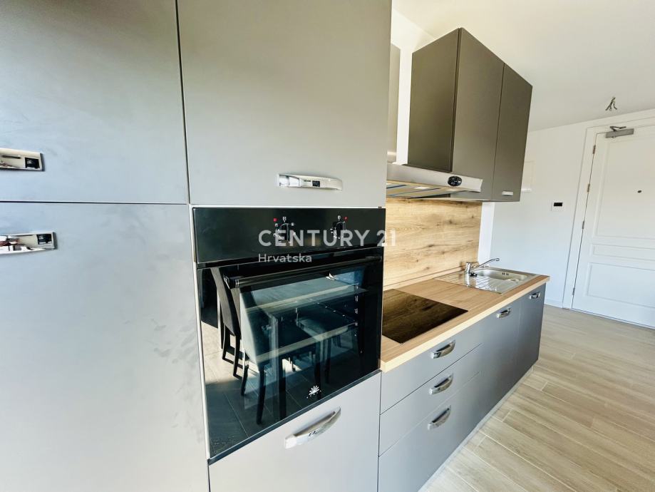Ovaj stan odiše suvremenim dizajnom i nudi sve pogodnosti modernog života. Prostrani dnevni boravak povezan je s kuhinjom opremljenom aparatima, uključujući perilicu posuđa, a tu je i elegantan prostor za blagovanje. Stan se sastoji od jedne spavaće sobe, a orijentacija prema jugozapadu omogućava obilje prirodnog svjetla tijekom dana. Dodatnu vrijednost pruža balkon od 10 m2, savršen za opuštanje uz lijep pogled.