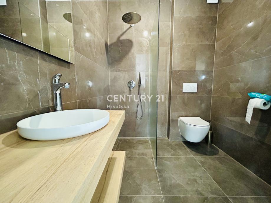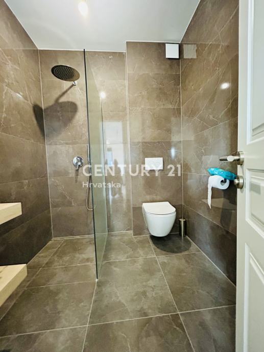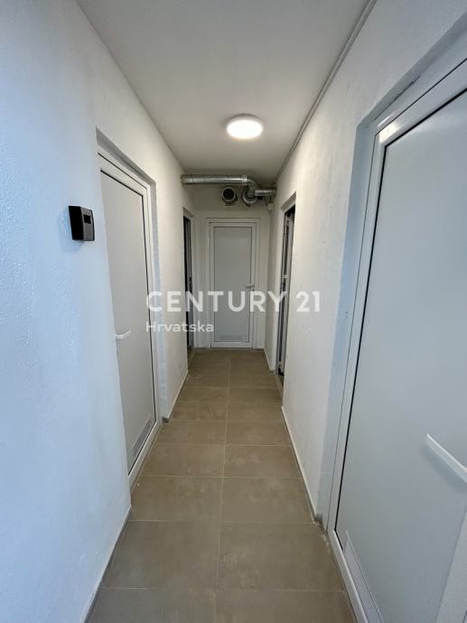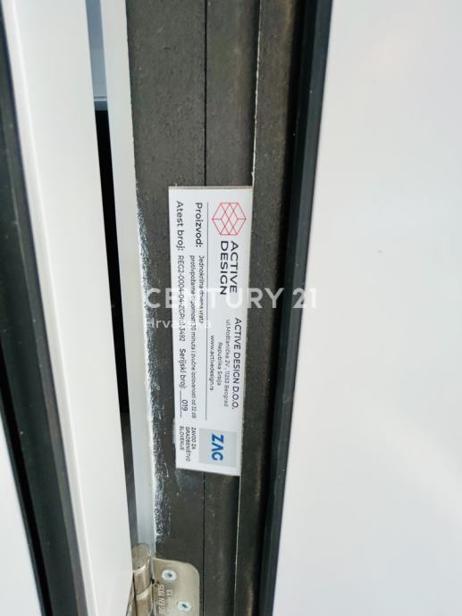 Stan je opremljen vrhunskom keramikom, aluminijskom stolarijom sa komarnicima i električnim roletama, protupožarnim i protuprovalnim ulaznim vratima, kvalitetnim drvenim unutarnjim vratima.