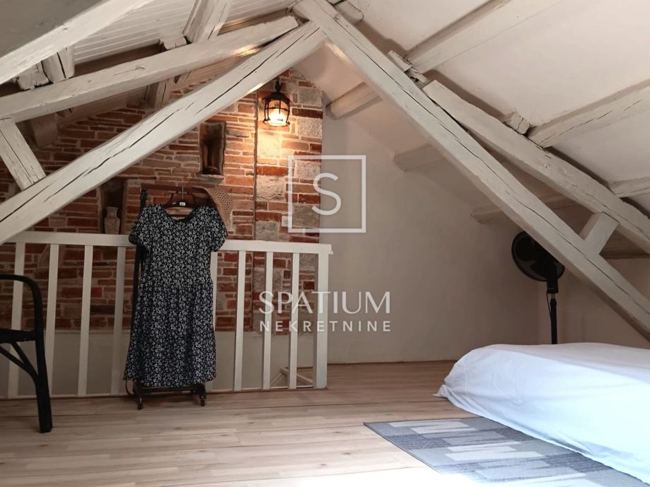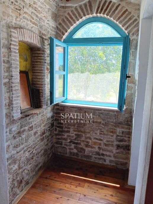 POREČ, MUŠALEŠ, u ponudu smo dobili šarmantnu kamenu kuću u nizu udaljenu samo 4 km od centra Poreča. Prizemlje se sastoji od ulaznog hodnika, kuhinje, blagovaone s dnevnim boravkom i kupaonice. Unutarnjim stepeništem dolazi se na kat gdje su smještene dvije sobe i toalet. Potkrovlje čini jedna velika prostorija koja trenutno služi kao spavaća soba. Kuća je južne orijentacije okružena zelenilom i nalazi se u mirnom dijelu istarskog sela.