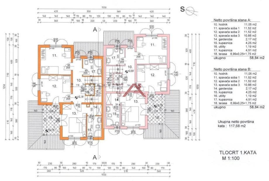 centralnog grijanja. Sastoji se od tri spavaće sobe, dvije kupaonice, posebmnog