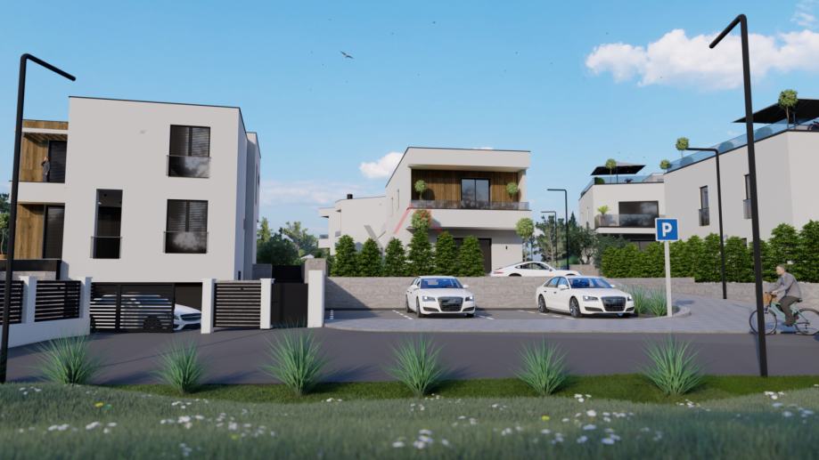 Vrhunske kvalitete izgradnje i opremljenosti, kuća netto površine od 130m2 proteže se na prizemlje i kat, te dvorište površine 227m2.