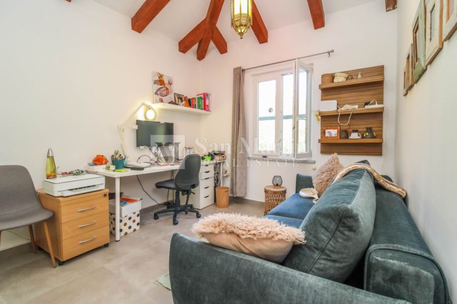 • Međukat (17,5 m²) trenutno uređen kao ured, uz mogućnost pretvaranja u dodatnu spavaću sobu