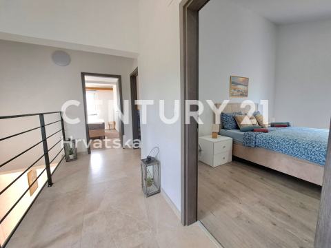Ova moderna i prostrana kuća pruža pogled na more i okružena je mirnom okolinom, savršenom za obitelj ili kao luksuzna oaza za odmor. Prostire se na zemljištu od kojeg postoji mogućnost dodatne gradnje, tako da je idealna i kao investicija za one koji žele proširiti ili nadograditi svoju nekretninu.