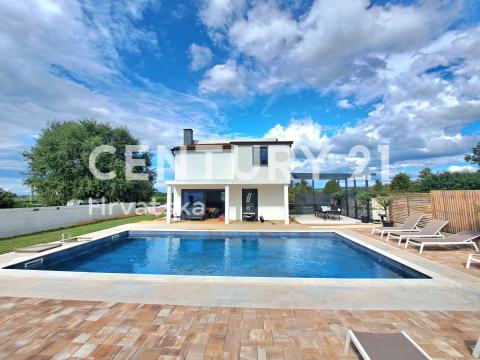 Kuća raspolaže s tri komforne spavaće sobe, prostranim dnevnim boravkom, dvjema modernim kupaonicama, te velikom terasom za uživanje u suncu i pogledima. Vanjski dio dizajniran je za opuštanje i zabavu: tu je bazen od 50 m2 koji je savršen za osvježenje tijekom toplih ljetnih dana, kao i ograđeno i uređeno dvorište idealno za druženje ili pripremu roštilja.