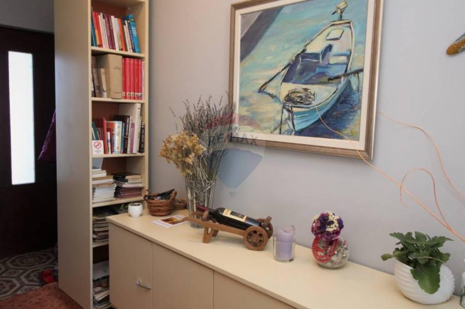 Prodaje se apartmanska kuća sa poslovnim prostorom predivnog otvorenog pogleda prema moru. Nalazi se svega 1,5 km udaljenosti od centra grada i svih gradskih sadržaja, a more, plaže i svi turistički sadržaji su na svega cca 1 km. U prizemlju je veliki poslovni prostor, prelijepa Istarska konoba sa kaminom i apartman. Na katu se nalaze još 3 apartmana sa lijepim panoramskim pogledom prema moru. Kuća se prodaje i u cijeni je izražena sa terenom koji se uz nju veže od 709m2, koji sada služi kao vrt u kojem se nalazi kamena vrtna kućica sa krušnom peći, koji je zasebna građevinska čestica. Oko kuće ima puno zelenila, te kao takva zadržava pvoju privatnost u oazi mira. Odlična lokacija, raznih mogućnosti, velika kvadratura kuće i terena pruža vrlo interesantan potencijal.