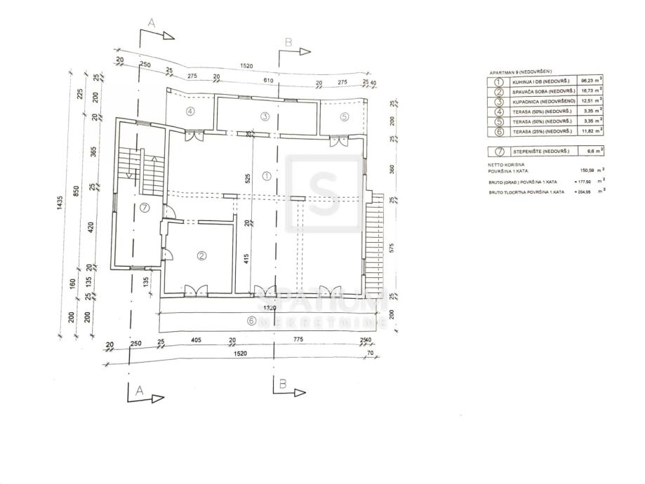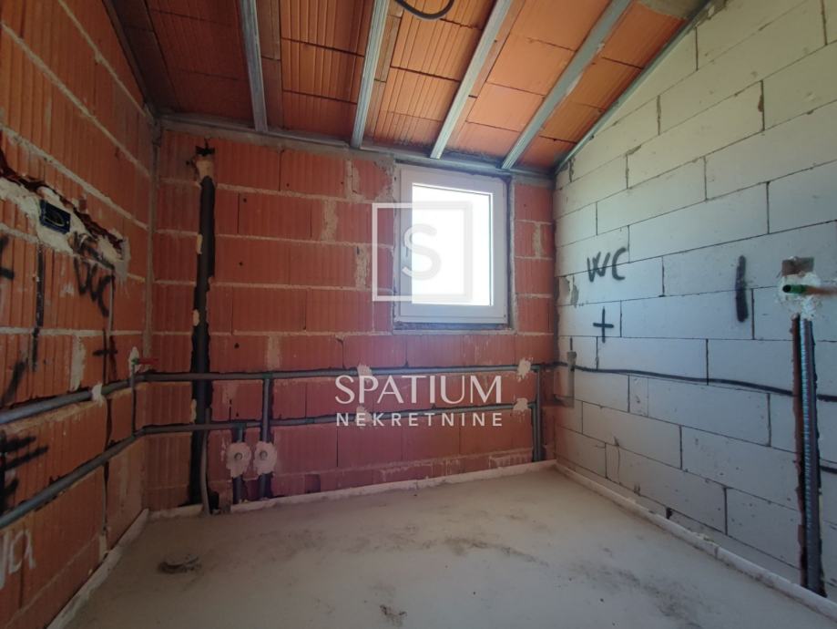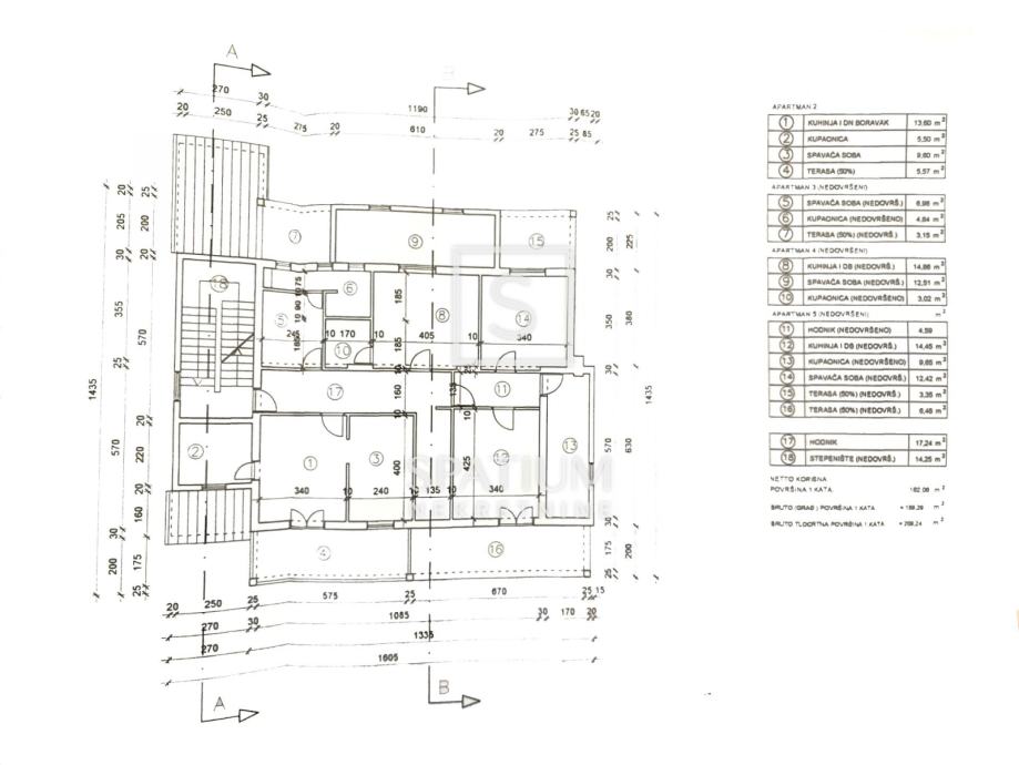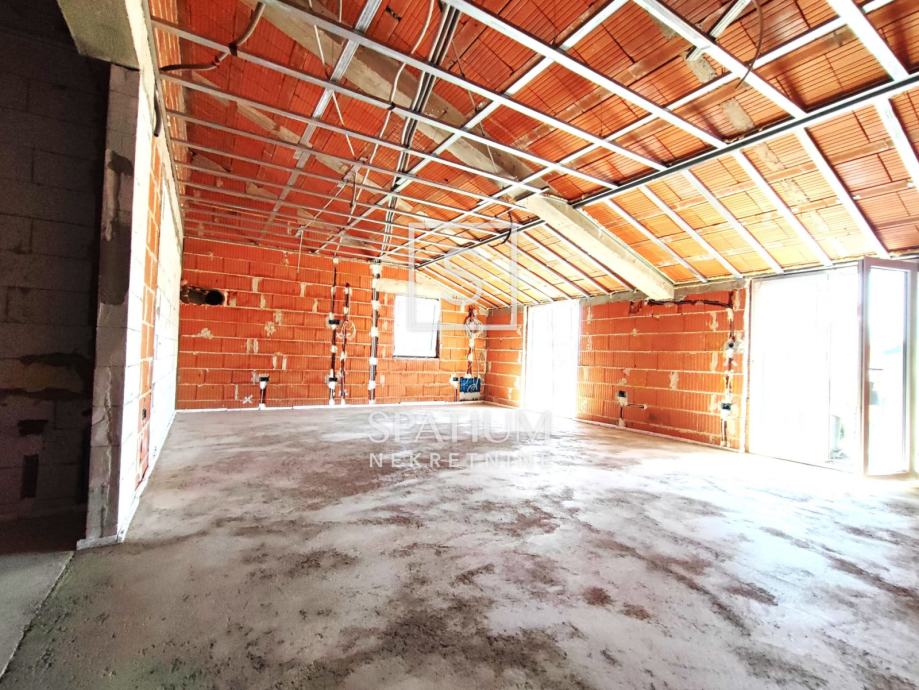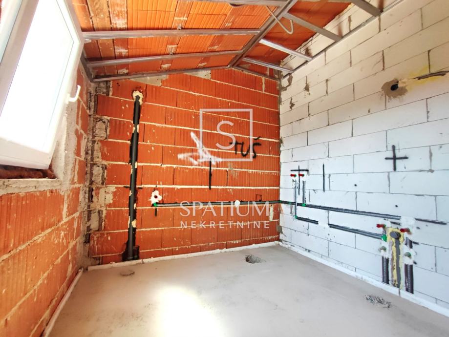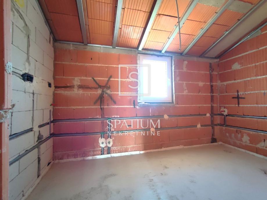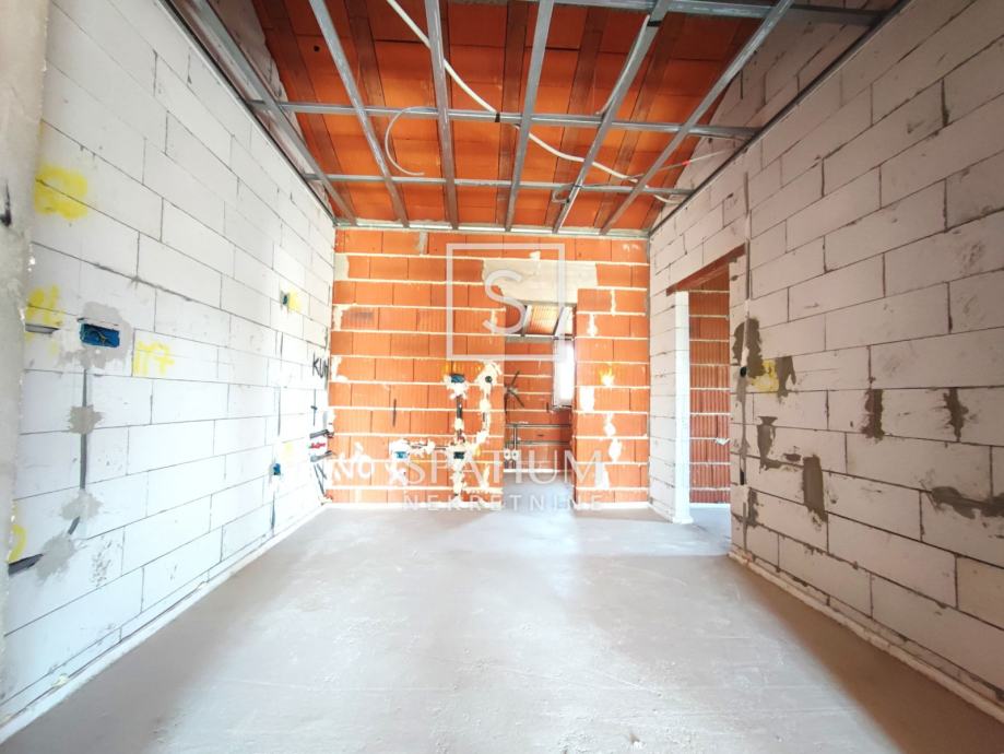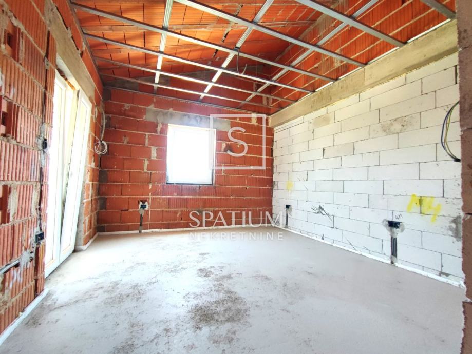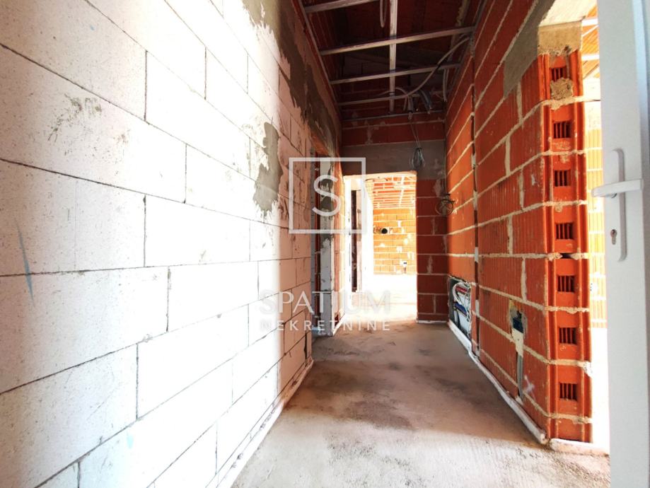 Na prvom katu nalaze se četiri stambene jedinice (tri u roh-bau fazi) ukupne površine cca 160 m², dok je drugi kat trenutno u fazi adaptacije i preuređuje se u prostrani penthouse. Budući penthouse sadržavat će tri spavaće sobe s vlastitim kupaonicama, dnevni boravak s kuhinjom i blagovaonicom, veliku natkrivenu terasu. Planirana oprema uključuje podno grijanje putem dizalice topline, što omogućuje ugodan boravak tijekom cijele godine. Obe etaže imaju dvije prostrane terase s jedne strane kuće te po dva balkona s druge strane, čime se osigurava obilje prirodnog svjetla i mogućnost uživanja u vanjskom prostoru. Iako nije u potpunosti dovršena, ova nekretnina predstavlja veliki potencijal za investiciju – bilo kao obiteljska kuća, objekt za turistički najam ili kombinacija privatnog i poslovnog prostora.