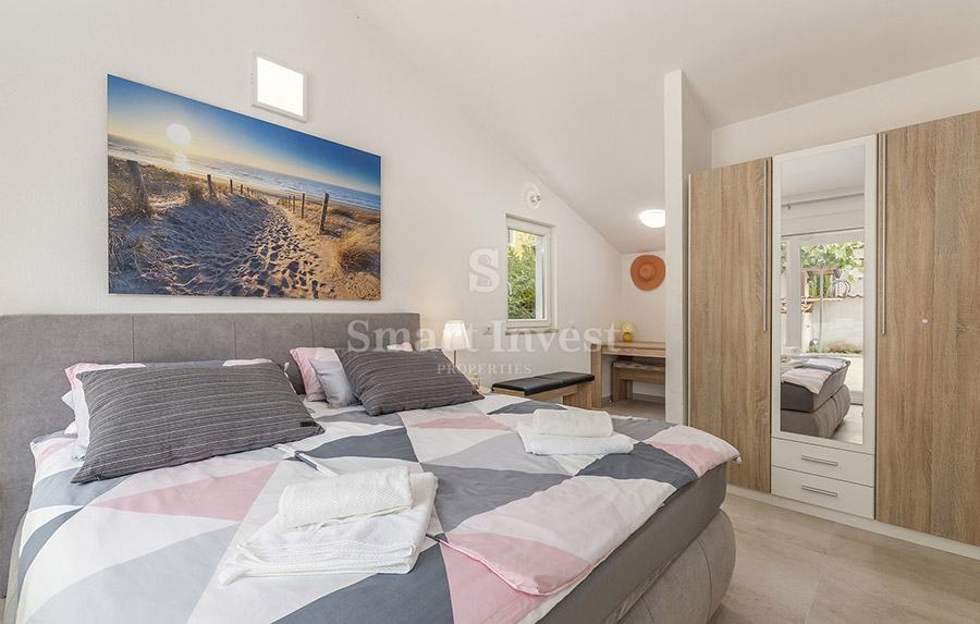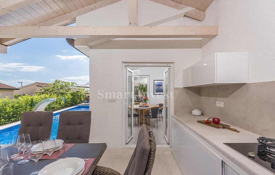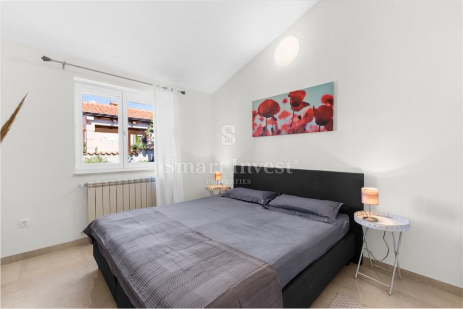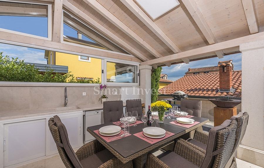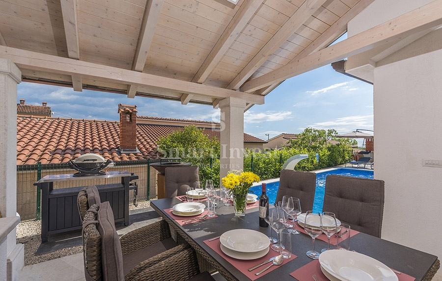 Ova kvalitetno opremljena i ukusno uređena kuća smještena na atraktivnoj lokaciji u blizini svih sadržaja i nedaleko centra Poreča je pogodna za miran obiteljski život tijekom cijele godine, ali i kao pametna investicija za turistički najam s obzirom da je kuća kategorizirana s 4*.