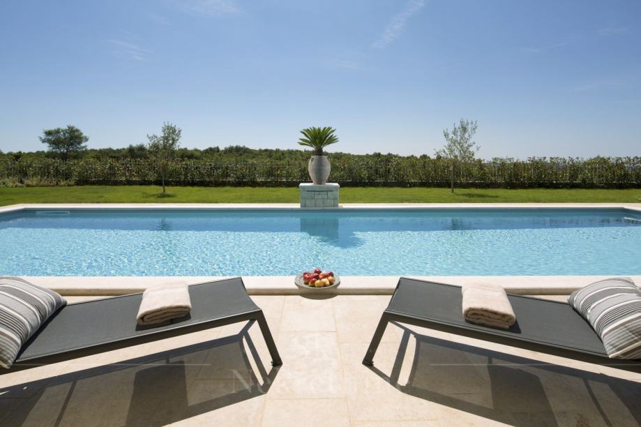 Oko bazena veličine 67 m2 nalazi se zona opuštanja s ležaljkama, dok je natkrivena terasa najbolje mjesto za obrok ili odmor.
