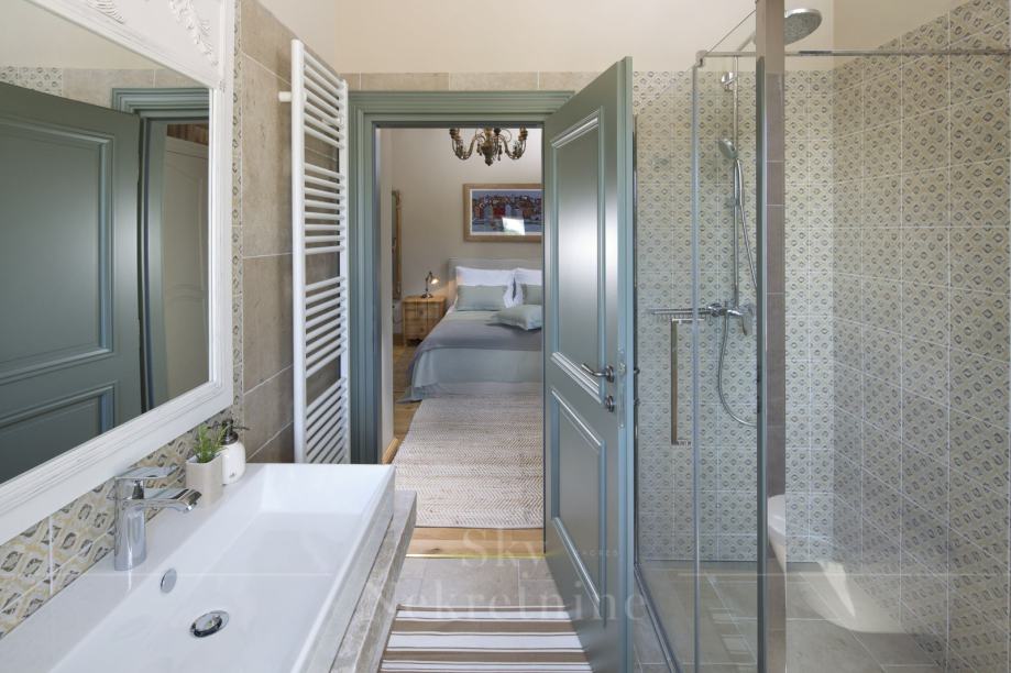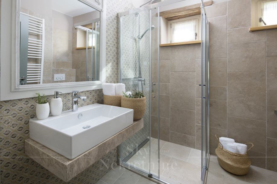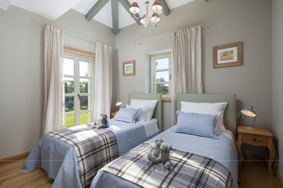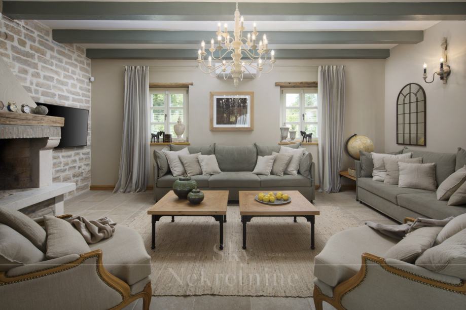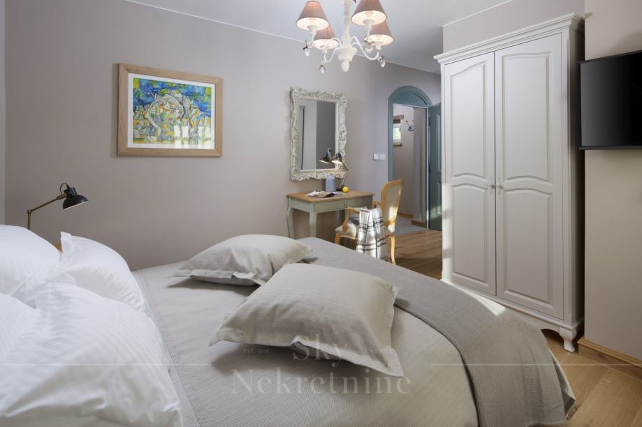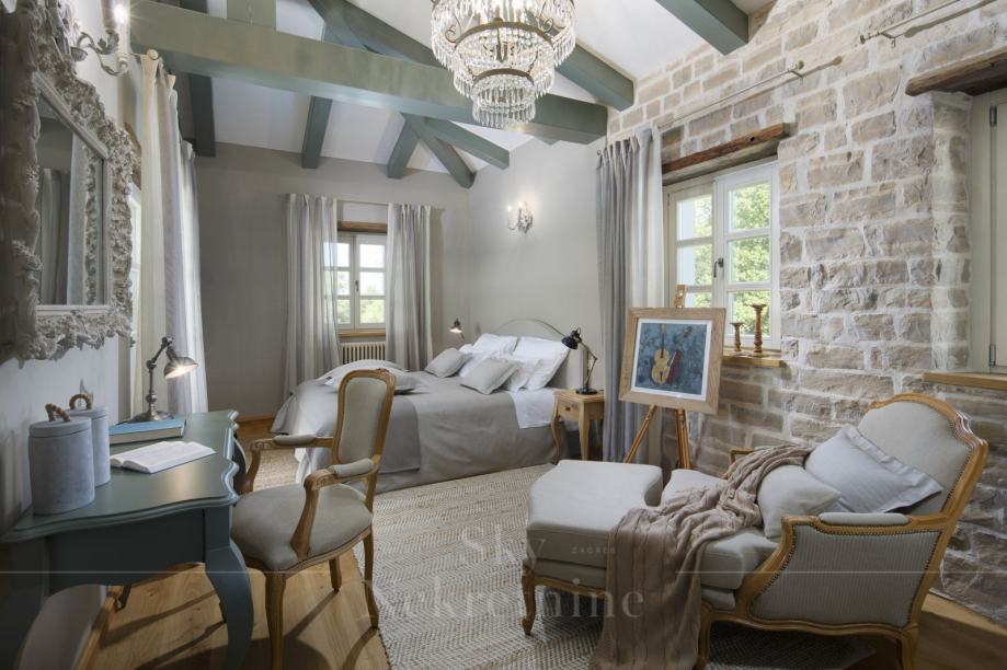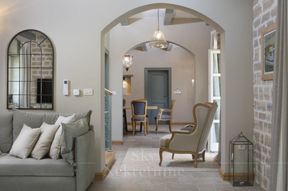 U prizemlju vile nalazi se velika prostorija koja lukovima odvaja prostrani dnevni boravak, blagovaonicu i kuhinju. U prizemlju se nalaze i dvije spavaće sobe, svaka sa svojom privatnom kupaonicom te gostinjski wc. Na 1. katu nalaze se tri spavaće sobe od kojih svaka ima svoju privatnu kupaonicu.