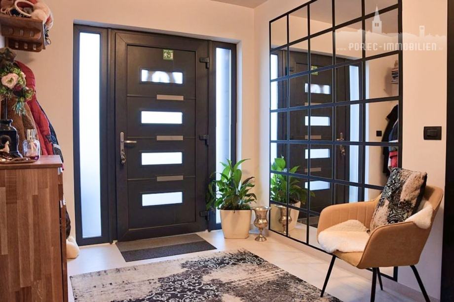 Stolarija je PVC u boji antracita. Kuća ima jako dobru izolaciju, pa se na grijanje i hlađenje troši vrlo malo električne energije.