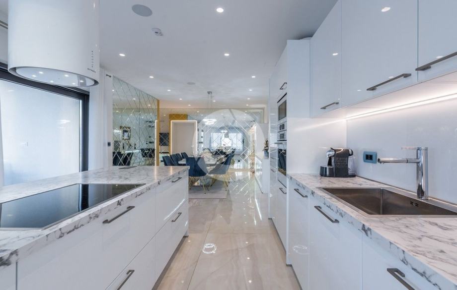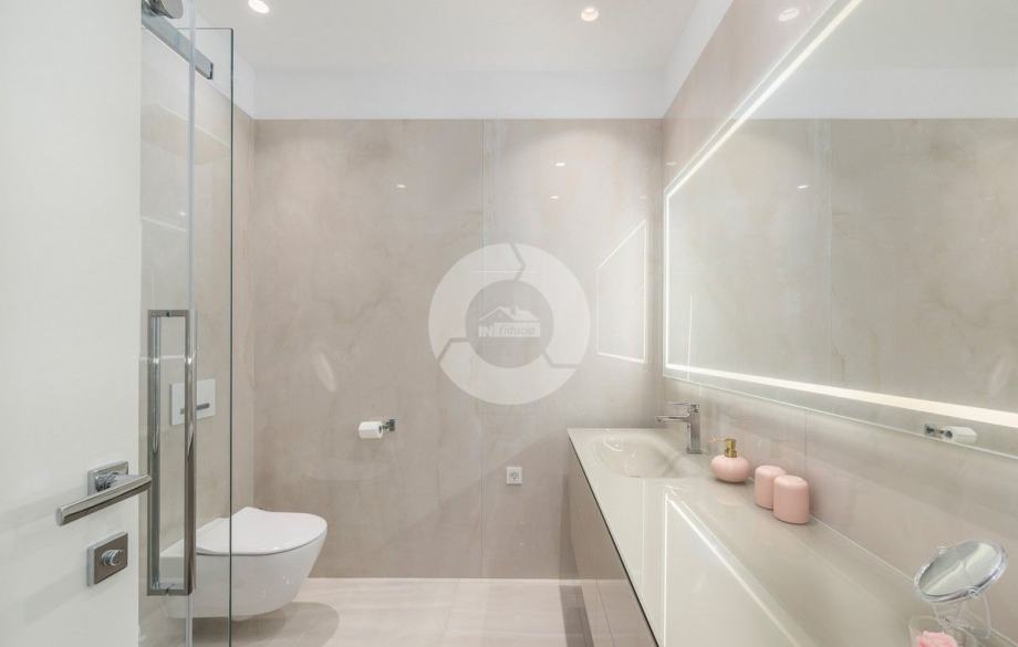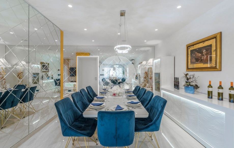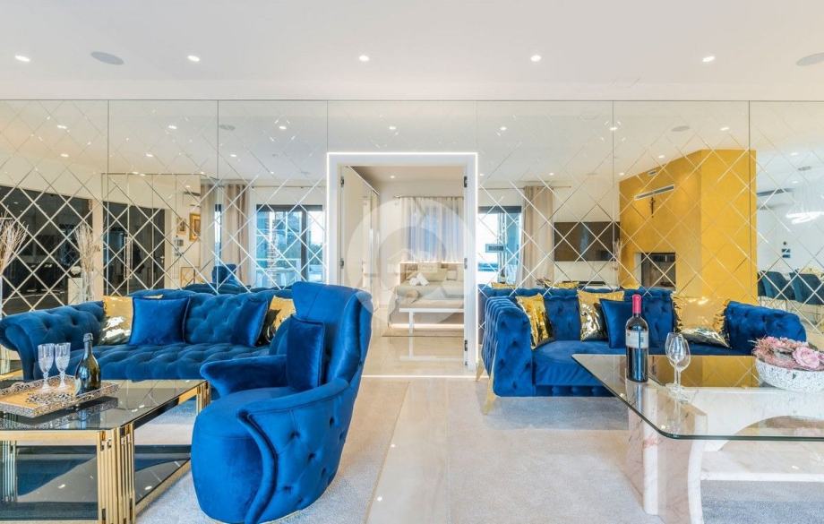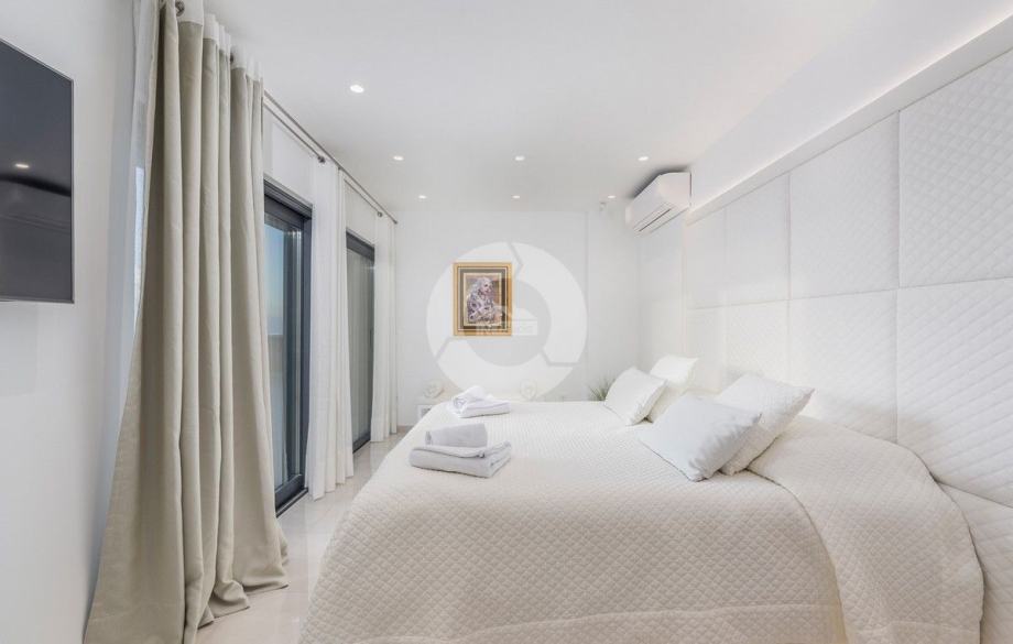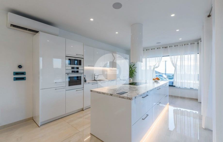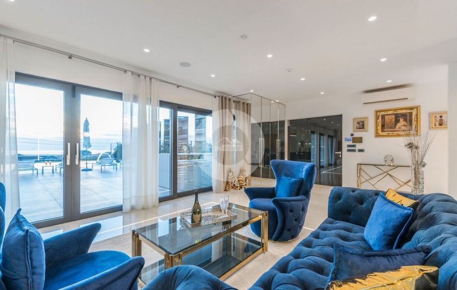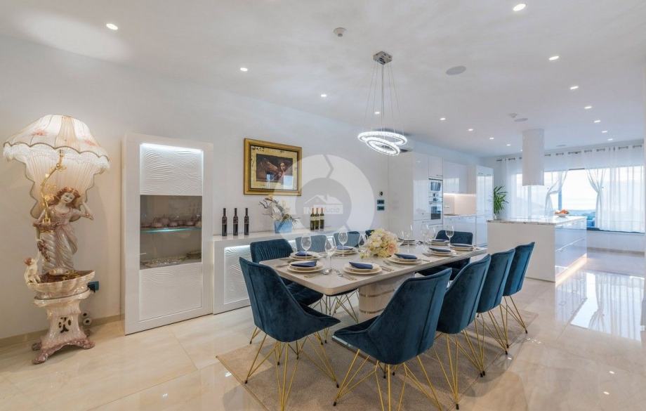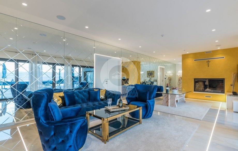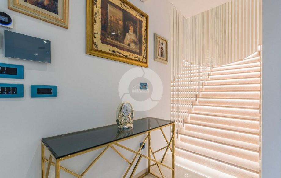 Sa svojih 400 m2, može smjestiti 10 ljudi u 5 spavaćih soba. 2 sobe nalaze se u prizemlju, opremljene sa King size krevetima, TV-om, Walk-in ormarom 3 spavaće sobe na katu s kojeg imate predivan pogled na more, i možete pristupiti bazenu i vrtu s odvojenim stepenicama. Tamo su 4 walk-in kupaonice, jedna u prizemlju i 3 na gornjem katu. U prizemlju se nalazi kompletno opremljena kuhinja i blagovaonica, i luksuzno uređen dnevni boravak podijeljen na dnevni boravak s kutnom garniturom i fotelje, i lijep bar s vinotekom, pogodno za večernja druženja. U vrtu se nalazi prekrasni mozaik bazen (11×6) okružen ležaljkama i potpuno ograđen ogradom i zelenilom.