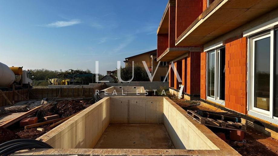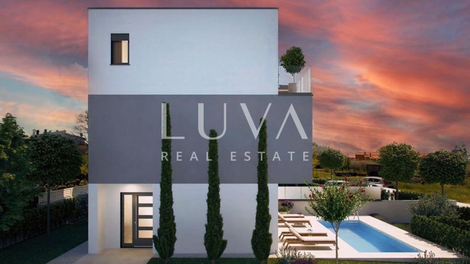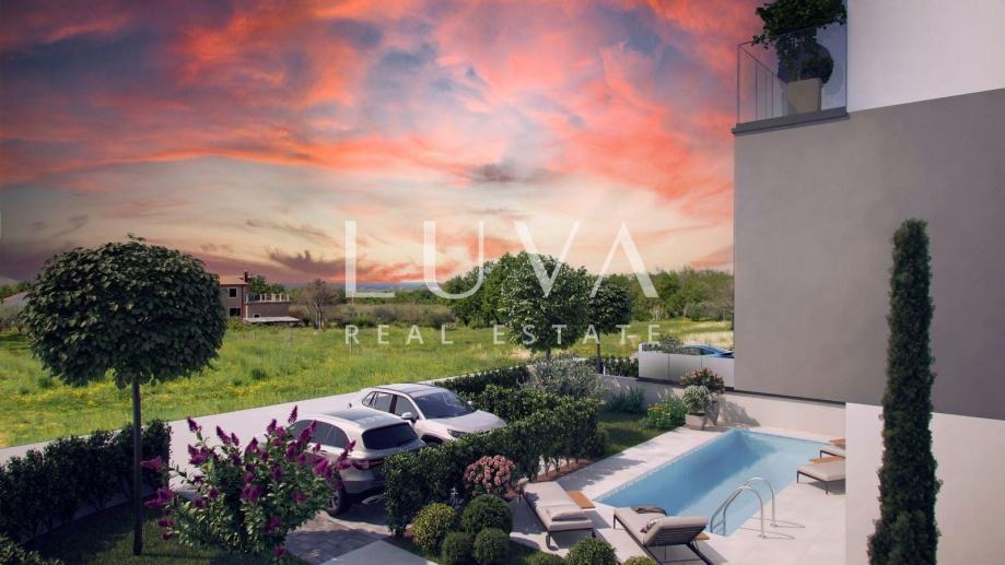 Prodaje se moderna novogradnja u malom mirnom naselju Žbandaju, blizu Poreča. Ova luksuzna kuća s pogledom na more pruža savršenu ravnotežu privatnosti i blizine svim ključnim sadržajima.