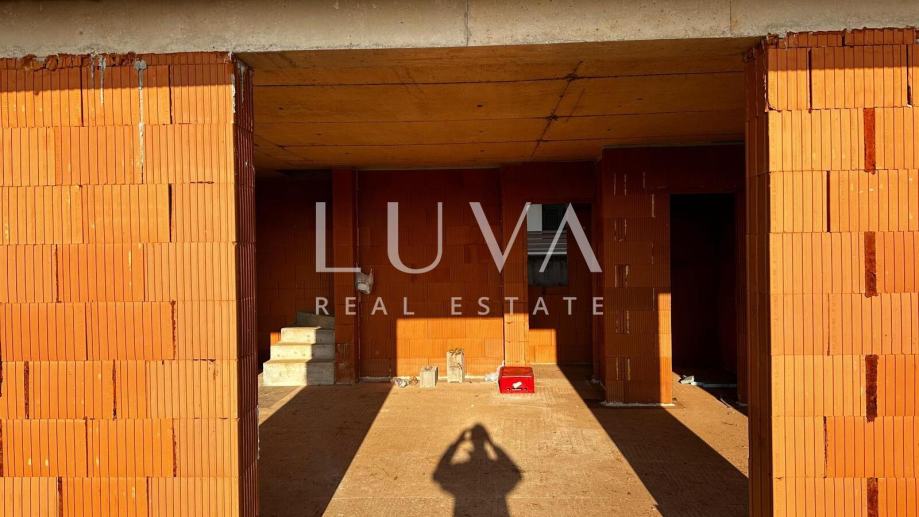 Kuća obuhvaća četiri spavaće sobe, tri elegantne kupaonice i dodatni WC. Središte prizemlja čini prostrani dnevni boravak s kaminom, savršen za opuštanje u udobnosti doma. Okružena prostranim zemljištem, kuća nudi dovoljno prostora za vanjske aktivnosti i maksimalnu privatnost.