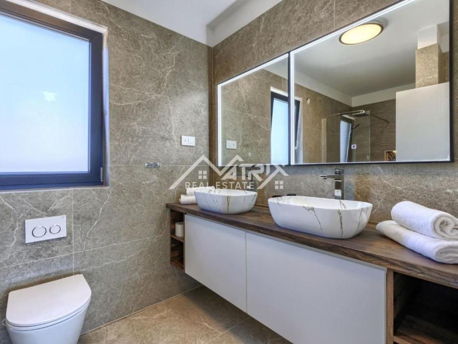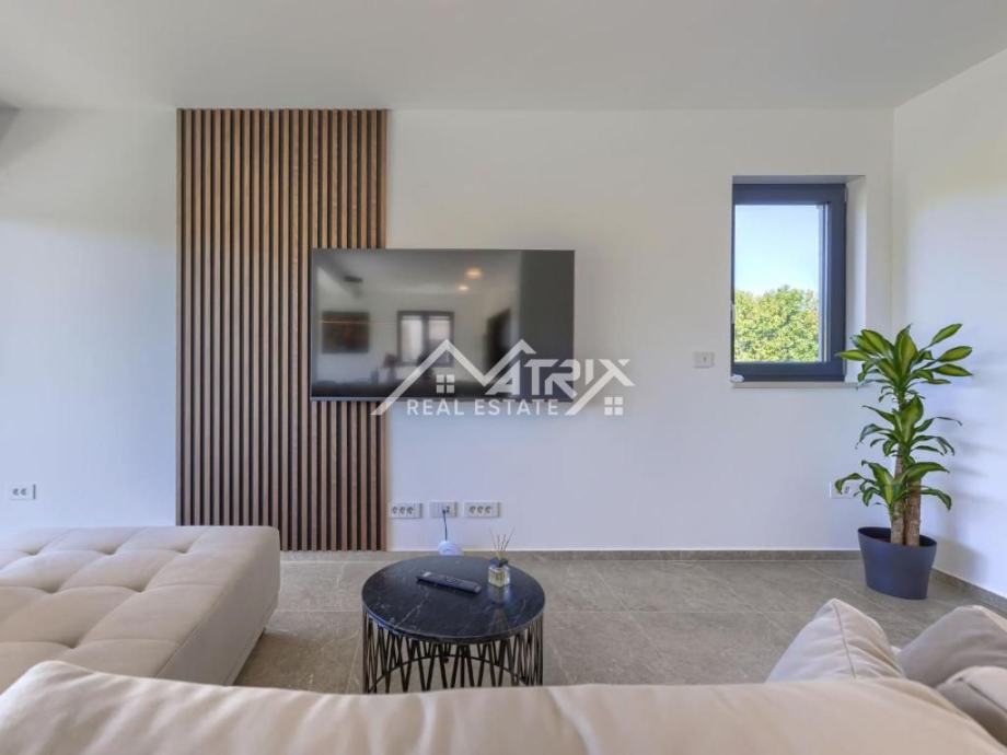 Ova nekretnina pruža savršen spoj suvremenog dizajna, funkcionalnosti i luksuza, u mirnom i zelenom okruženju. Idealna je za cjelogodišnji život, ali i kao vrhunska investicija za turističko iznajmljivanje.