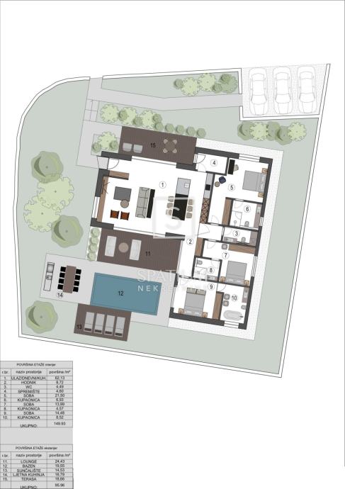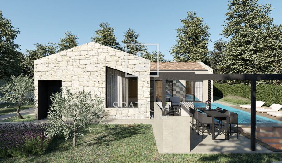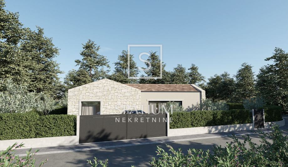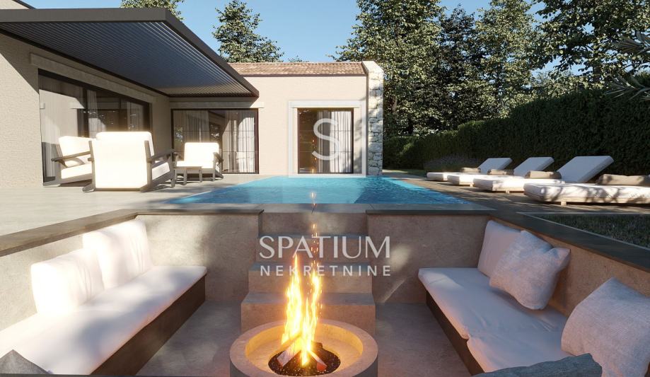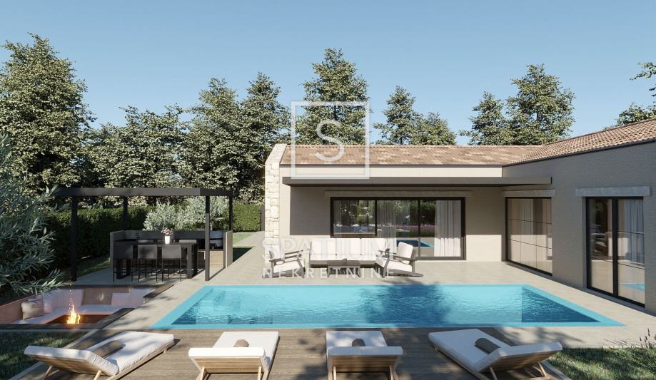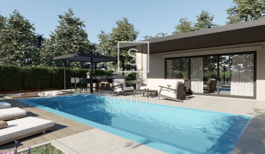 POREČ, u ponudi imamo moderno dizajniranu prizemnicu smještenu na zemljištu od 750 m², osmišljenu za maksimalnu udobnost i uživanje. Ova luksuzna nekretnina nudi 150 m² stambenog prostora, uz dodatnih 95 m² vanjskog prostora za opuštanje, uključujući bazen, sunčalište, lounge zonu, vanjsku kuhinju i tri osigurana parkirna mjesta.