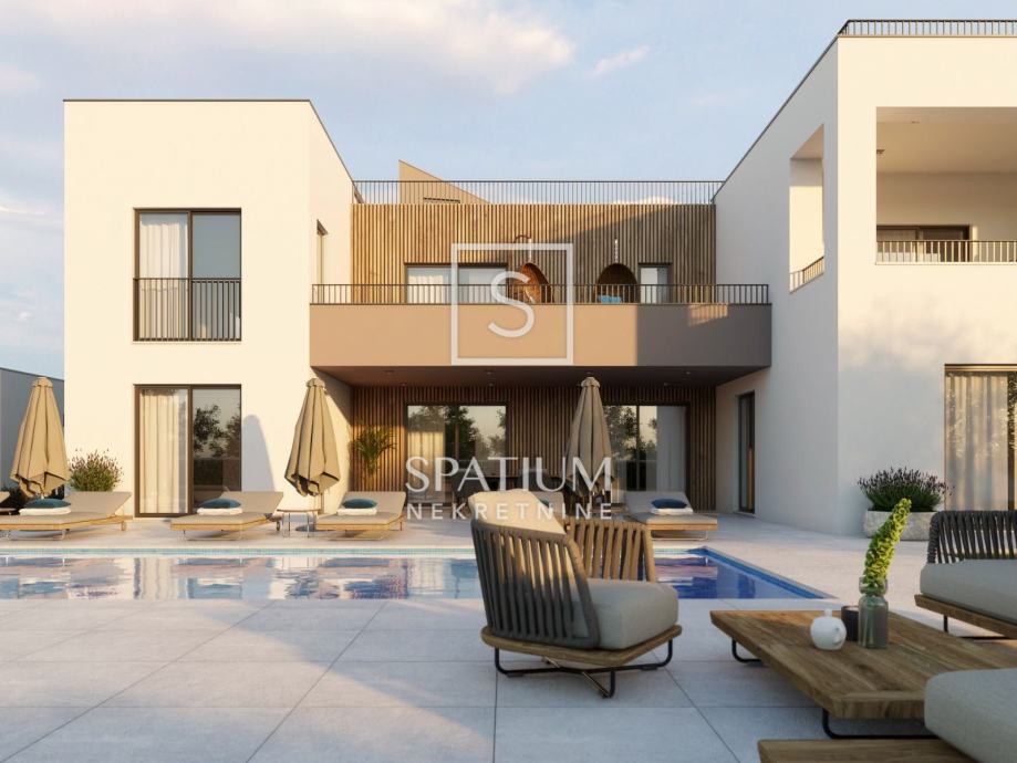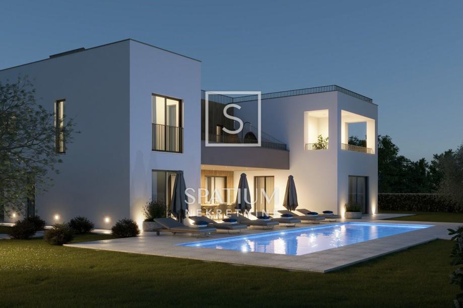 Vanjski prostor ove vile jednako je impresivan kao i njezina unutrašnjost. Smještena na parceli od 1.300 m², vila obuhvaća garažu, prostrani bazen te vanjsku kuhinju koja je idealna za obiteljska okupljanja i druženja s prijateljima. Uređena okućnica dodatno je oplemenjena privatnom bušotinom koja će služiti za navodnjavanje zelenila.