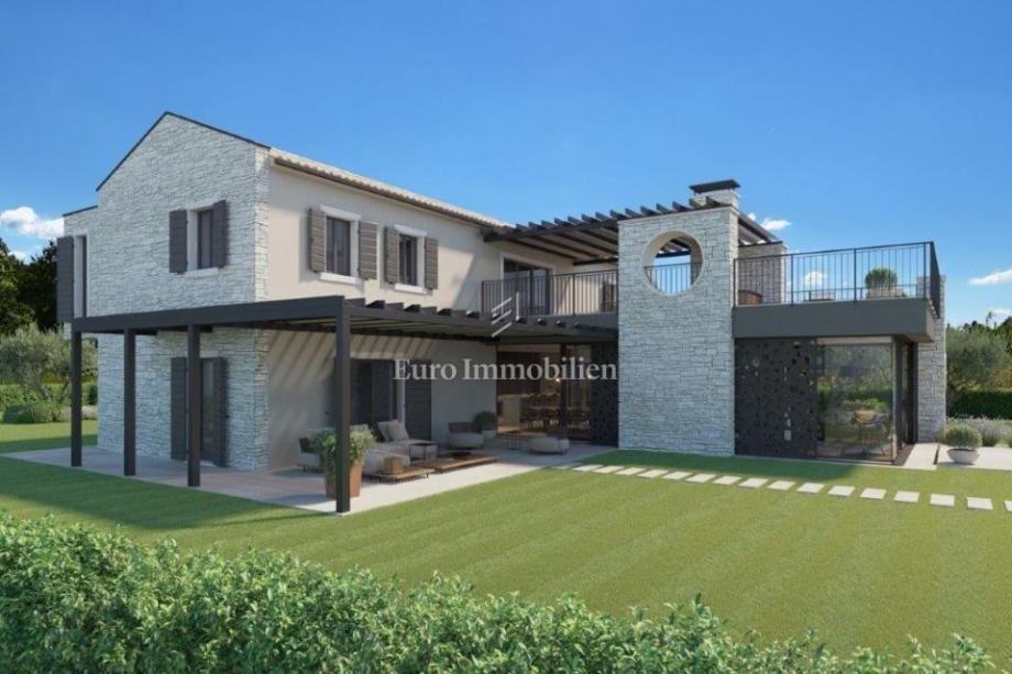 Kvalitetna moderna villa u novogradnji, smještena na izuzetno lijepoj i mirnoj lokaciji s pogledom na more. Villa površine 230 m2 se sastoji od 4 spavaće sobe, 4 kupaone i WC-a, na katu se nalazi prostrana terasa sa Whirlpoolom. Bazen veličine 50 m2 sa slanom vodom, obložen keramikom. Natkriveni parking površine 60 m2 sa spremištem za stvari. Roštilj površine 42 m2 s WC-om. Ugrađeno je podno grijanje (toplinska pumpa), za hlađenje se koriste klima uređaji. Parcela ima površinu 1600 m2. Villa se nalazi otprilike 13 km udaljena od Poreča i mora- u okolici Vižinade.