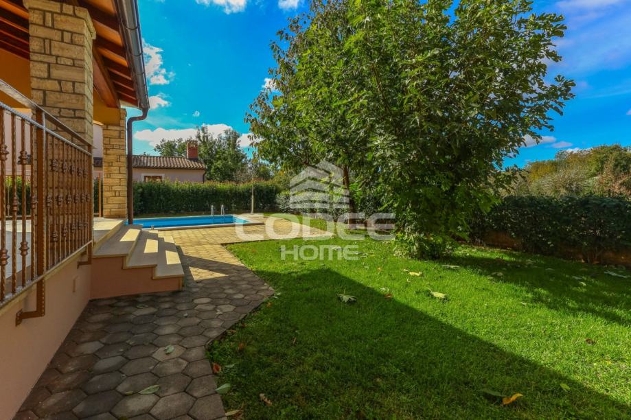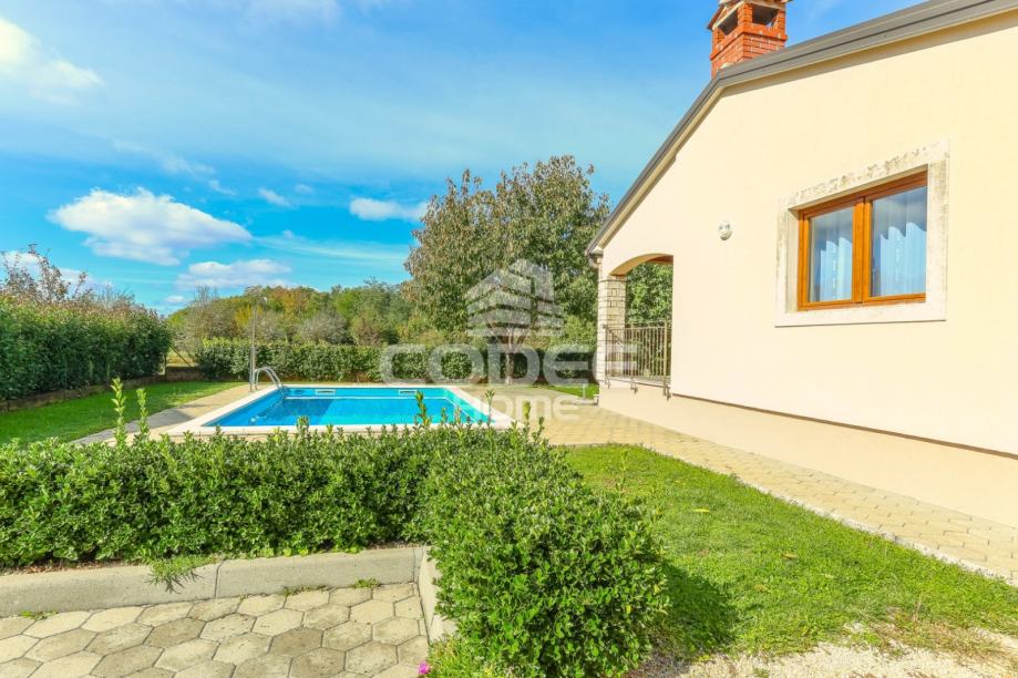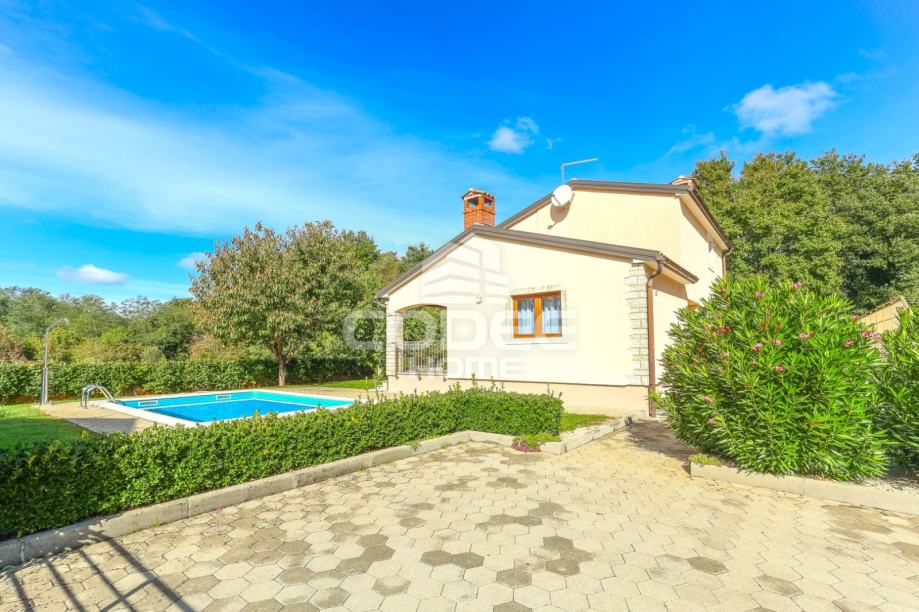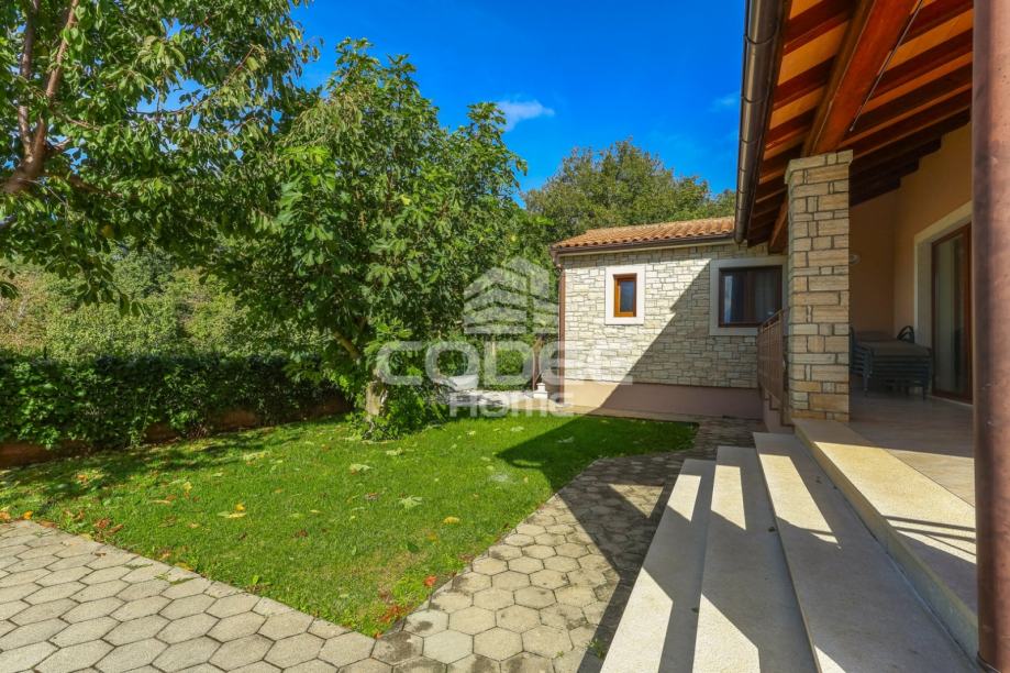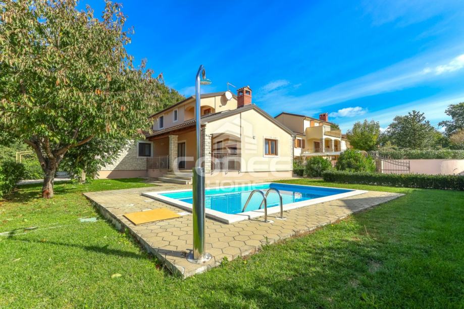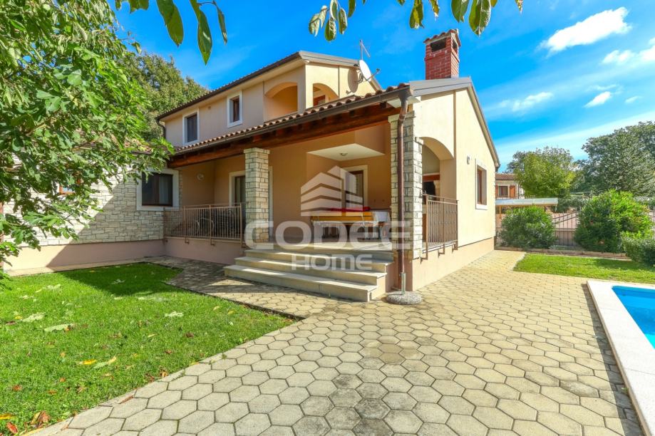 Prodaje se prekrasna samostojeća kuća mediteranskog stila, izgrađena 2010. godine, smještena u mirnom i sunčanom okruženju 12 kilometara udaljno od Poreča. Idealna je kao obiteljski dom ili kao udobna vikendica za odmor u potpunoj privatnosti.