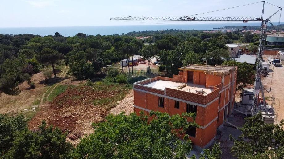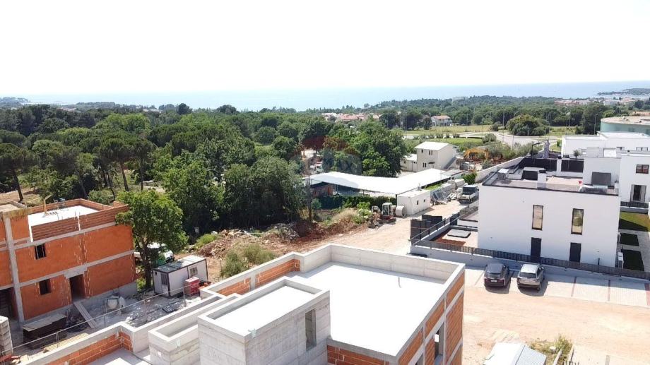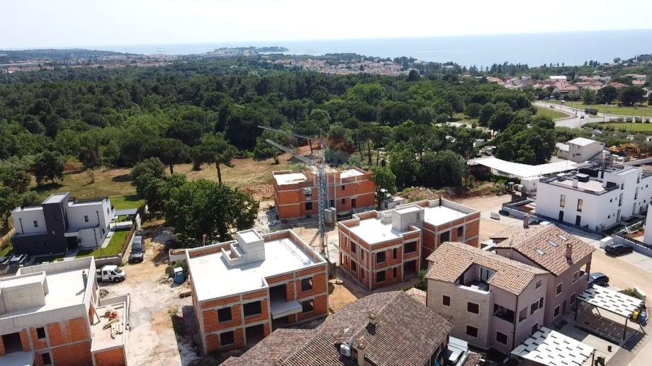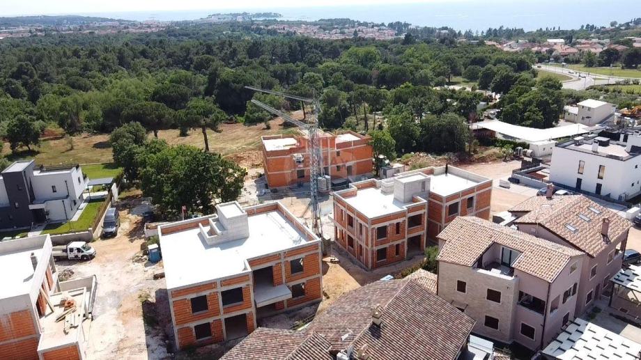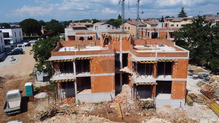 Predstavljamo stan u modernoj zgradi u izgradnji na samo 3 km od centra grada Poreča. Stan "B" nalazi se na 1. katu zgrade, pripada mu ulazni prostor 2,68 m2, predulaz 1,74 m2, kupaonica 4,63 m2, prostrani dnevni boravak s kuhinjom i blagovaonicom 38,87 m2, vešeraj 1,95 m2, 2 spavaće sobe, hodnik 5,04 m2. Iz dnevnog djela i iz jedne sobe izlaz vodi na natkrivenu terasu od 7,1 m2. Stepenište dalje vodi do gornje etaže gdje se nalazi velika krovna terasa 32,56 m2 s koje se pružaju neodoljivi pogledi prema okolini i panoramski pogledi prema moru. Stan ima zaseban ulaz, a ispred zgrade stanu pripadaju 2 parkirna mjesta. U cijelom stanu postavit će se podno grijanje nba dizalicu topline, a biti će postavljene i klima jedinice. Vrlo zanimljiv stan, profinjene i elegantne linije, moderno osmišljen projekt, vrhunska lokacija, pažljivo birani materijali vrhunskih proizvođača.