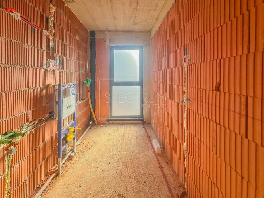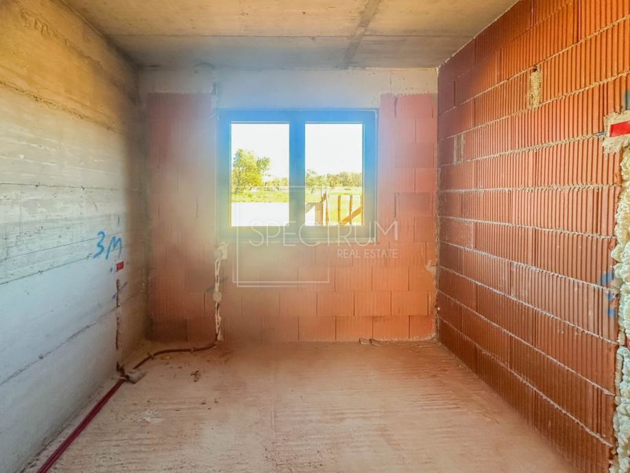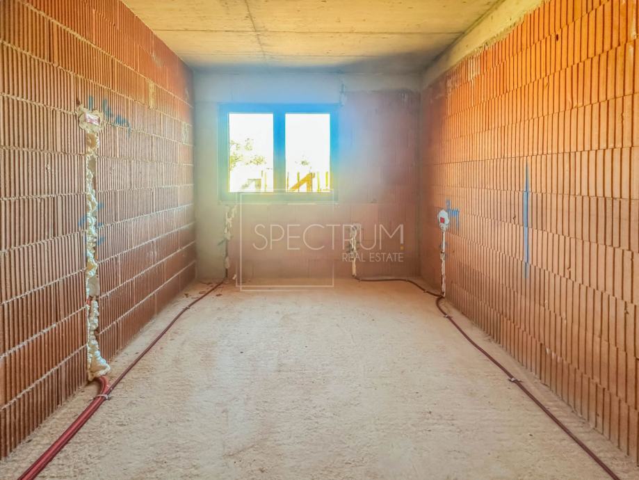 Stan se nalazi u prizemlju novoizgrađene stambene zgrade sa 5 stambenih jedinica. Površina stambenog prostora iznosi 74.50 m2. Stan se sastoji od open space dnevnog boravka sa kuhinjom i blagovaonicom, 2 spavaće sobe, kupaonice, wc-a, garderobne prostorije, hodnika i tehničke sobe. Iz dnevnog boravka se izlazi na prostranu natkrivenu terasu površine 20 m2, koja predstavlja idealan prostor za uživanje na otvorenome. Sa terase se dolazi do vrta površine 124 m2. U sklopu vrta postoji mogućnost izgradnje bazena. Raspored prostorija u stanu zaista pruža komfor novom vlasniku.