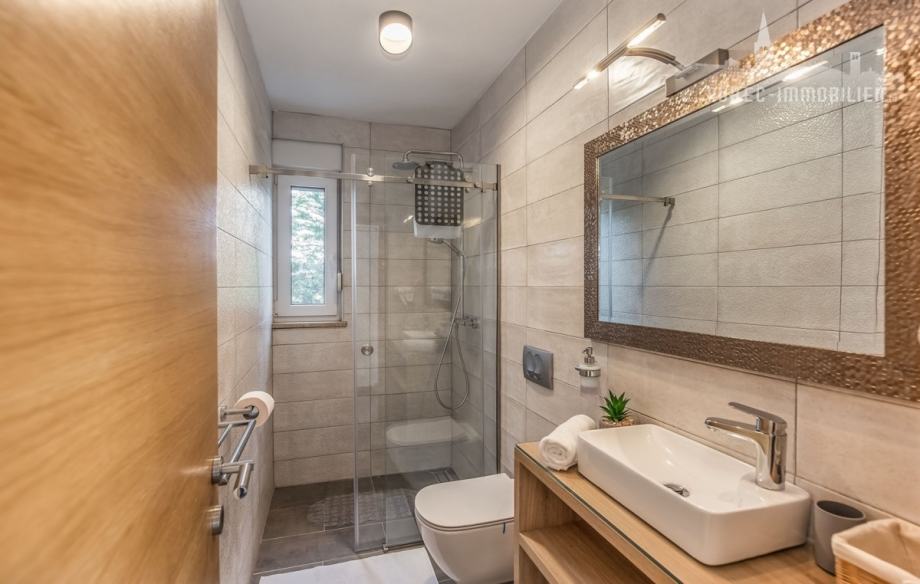 Na katu se nalaze dvije spavaće sobe i jedna kupaonica te još jedna prostrana terasa.