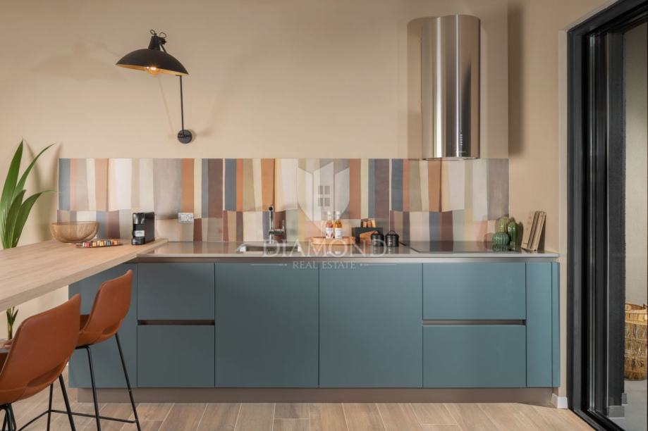 Kuća je projektirana u modernom arhitektonskom stilu, s naglaskom na čiste linije, kvalitetne materijale i ugodan ambijent. U neposrednoj blizini nalaze se trgovine, škole, vrtići, ugostiteljski objekti i svi potrebni sadržaji za svakodnevni život, dok su more i plaže lako dostupni.