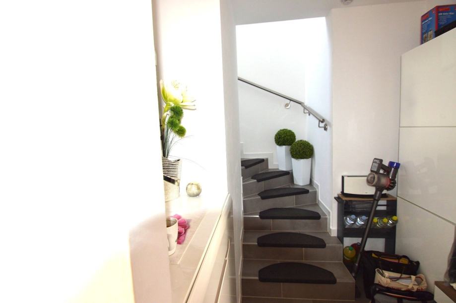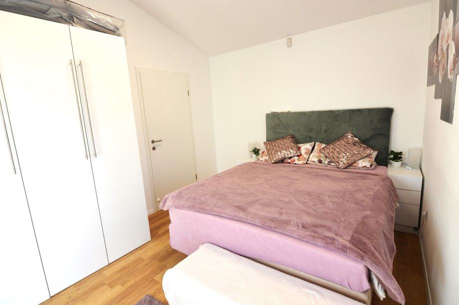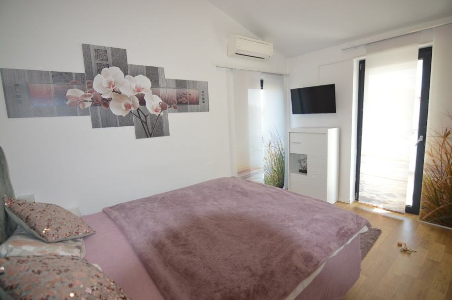 Stepenište vodi na kat gdje se nalaze dvije spavaće sobe , sa izlazom na terase te kupatilo.Jedna je terasa natkrivena za uživanje u sunčanim danima, dok je druga nenatkrivena i ima pogled na more.
