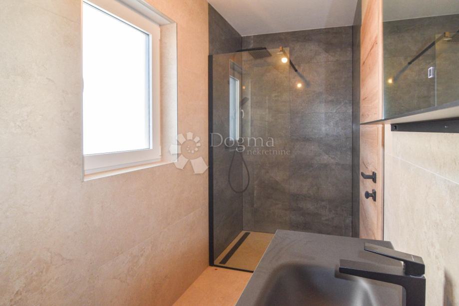 Kat je osmišljen kao privatna zona s tri elegantne spavaće sobe, od kojih svaka ima vlastitu kupaonicu, pružajući maksimalnu udobnost i privatnost. Iz master spavaće sobe pruža se prekrasan pogled na more, što dodatno naglašava ekskluzivnost nekretnine. Na katu se također nalazi i praktičan vešeraj.