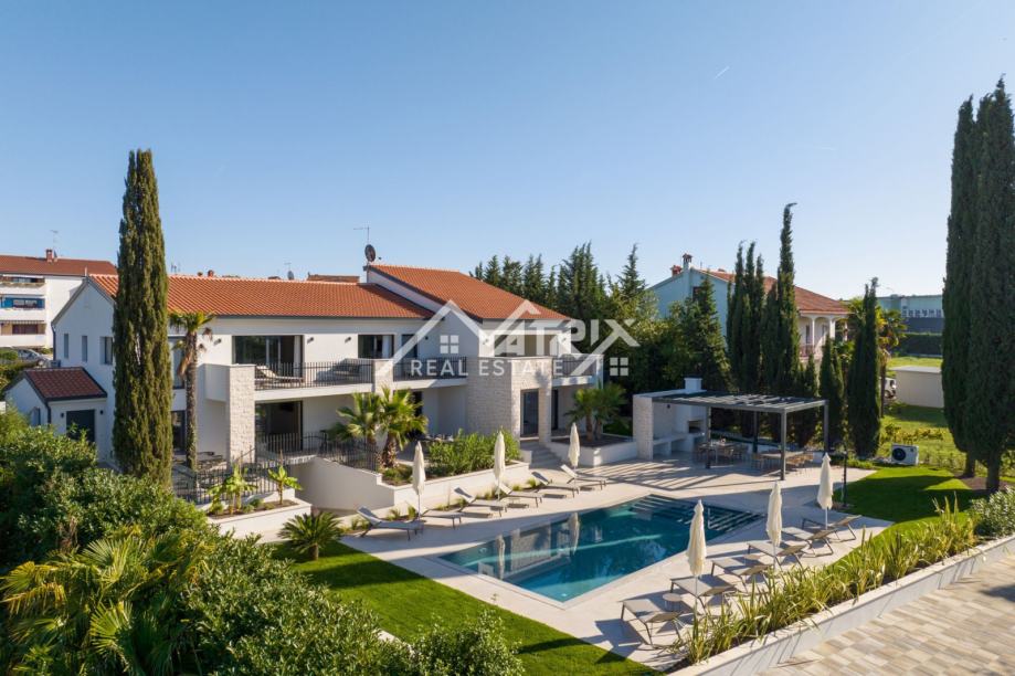 Poreč, moderna vila s bazenom i panoramskim pogledom blizu mora