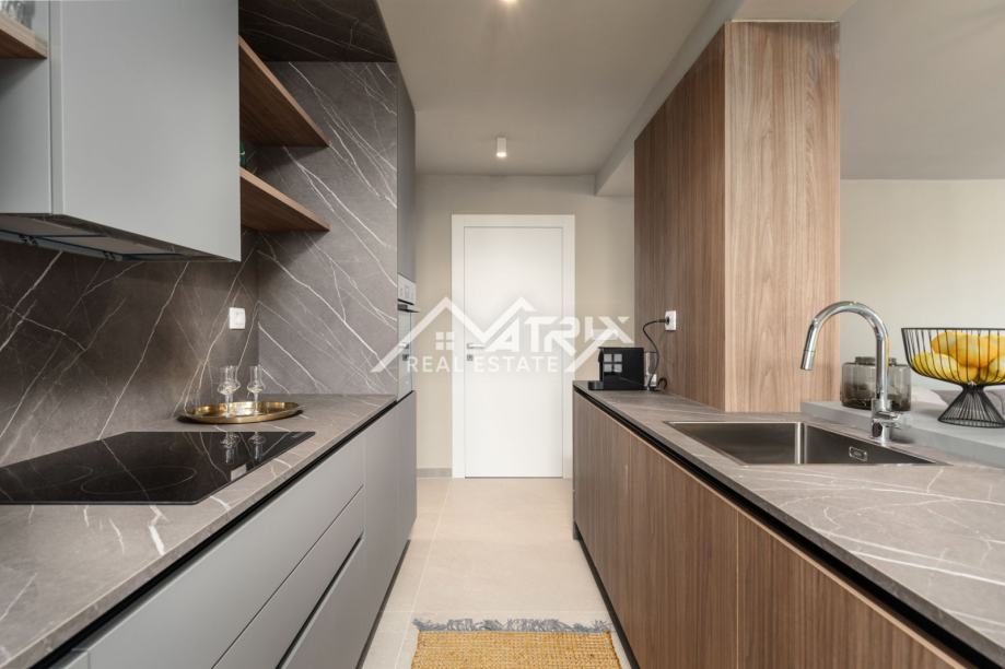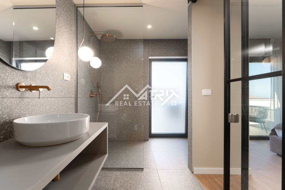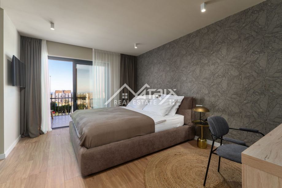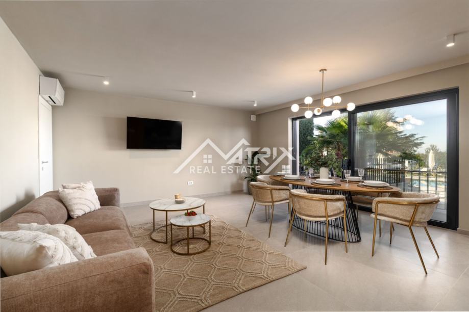 Na prodaju je moderna vila iz 2023. godine, smještena na zemljištu od 1.753 m² u blizini mora, idealna za obitelj ili turistički najam. Vila ima tri odvojena apartmana, svaki s vlastitim ulazom. Svaki apartman nudi prostran dnevni boravak, kuhinju, blagovaonicu, tri spavaće sobe i tri do četiri kupaonice. Ukupna stambena površina iznosi 683,15 m².