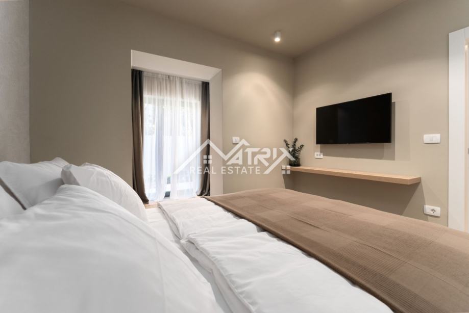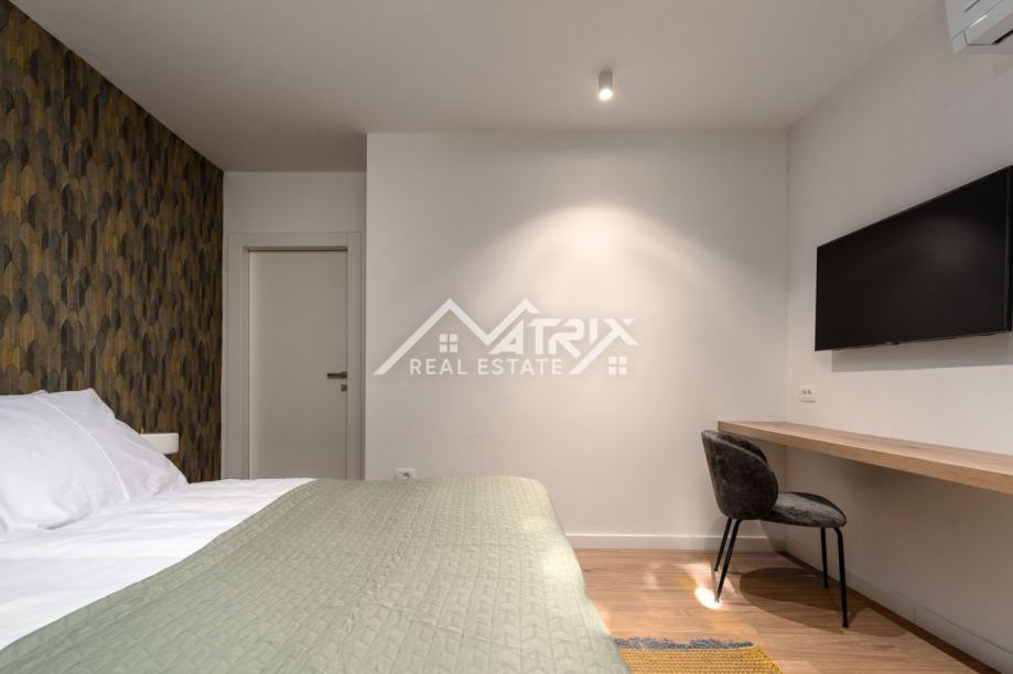 Ova nekretnina nudi idealan spoj luksuza i praktičnosti – blizina mora i panoramski pogled čine je savršenom za uživanje u miru i prirodi, dok tri odvojena apartmana s vlastitim ulazima pružaju fleksibilnost i mogućnosti za turistički najam. Bazen, uređeni vrt s mediteranskim biljem, roštilj te potpuno namješten interijer pružaju vrhunski komfor, a dodatne pogodnosti poput podnog grijanja, punjača za električne automobile i kategorizacije s 4 zvjezdice osiguravaju odličan povrat na investiciju. Svi ključni sadržaji nalaze se u neposrednoj blizini, što ovu vilu čini savršenom za one koji traže nekretninu na Jadranu za osobno korištenje ili najam.