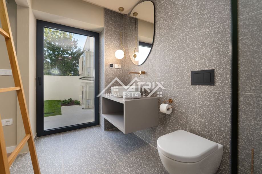 Svaki apartman opremljen je sustavom grijanja i hlađenja putem klima uređaja, a grijanje je omogućeno podnim niskoenergetskim sustavom. Također, vila ima i punjač za električne automobile. U podrumu se nalazi garaža, dok je cijela okućnica ograđena i osigurava potpunu privatnost.
