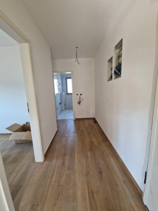 Sastoji se od : hodnika, open space dnevni boravak sa kuhinjom i blagovaonicom izlaz na natkrivenu terasu te veliko dvorište ca. 260m2 , dvije spavaće sobe i kupaonica .