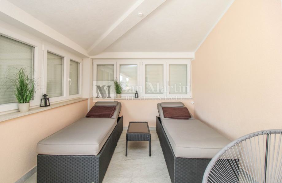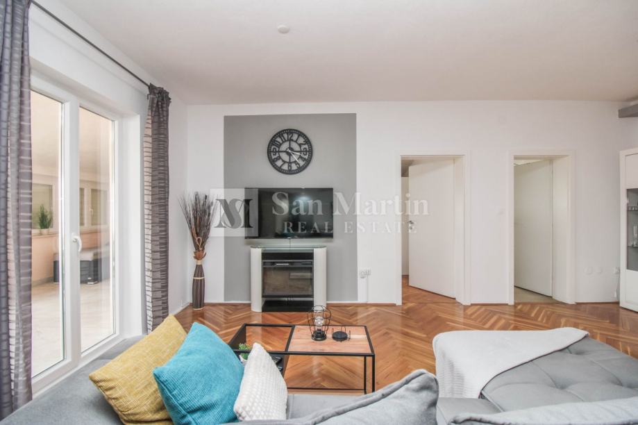 Dnevni prostor stana ima izlaz na veliku zatvorenu terasu.