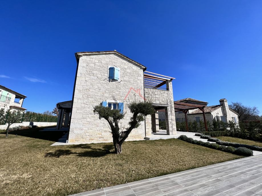 Vilu u prizemlju krasi prostran dnevni boravak s velikim prozorima koje istovremeno daju svijetlost i ugodnost te prekrasan kamin za one zimske dane, kuhinja, blagovaona, ostava, wc te izlaz na vanjsku natkrivenu kuhinju s kaminom. Na katu se nalaze tri prostrane spavaće sobe s pripadajućim kupaonama i prostrana terasa s bajkovitim pogledom na prirodu.
