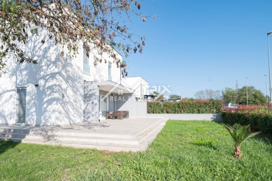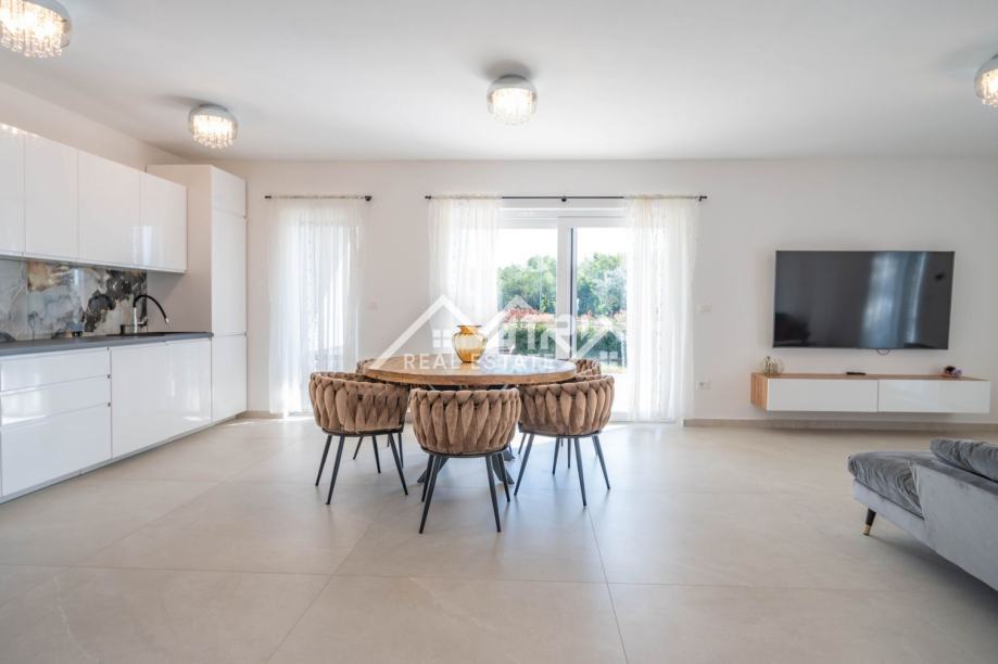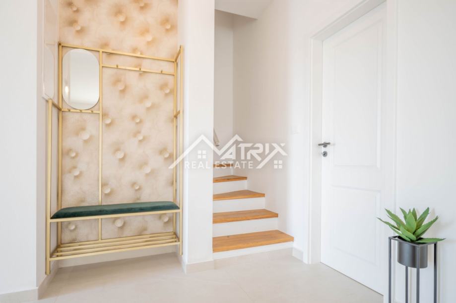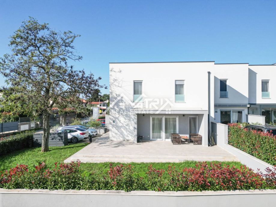 Prodaje se luksuzno opremljena krajnja kuća u nizu u mirnom naselju nadomak Poreča, idealna za sve koji traže nekretninu blizu mora i grada, a daleko od gužve. Smještena je na početku naselja, udaljena svega 5 km od centra Poreča i samo 3 km od prvih plaža, pa pruža savršenu kombinaciju privatnosti i lako dostupne infrastrukture.