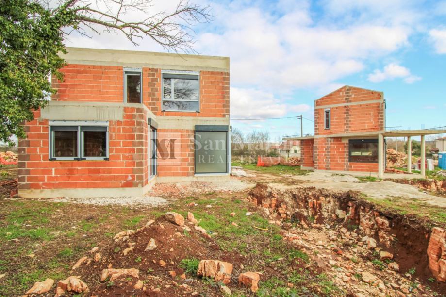 U mirnom mjestu u okolici Poreča na prodaju je ova lijepa novogradnja ukupne površine 106,50 m2 koja se smjestila na okućnici od 677 m2. Kuća se prostire na dvije etaže, u prizemlju su se smjestili ulazni hodnik, prostrani dnevni boravak, kuhinja i blagovaona, toalet za goste te dvije ostave. Na katu se nalaze 2 spavaće sobe svaka sa vlastitom kupaonom.